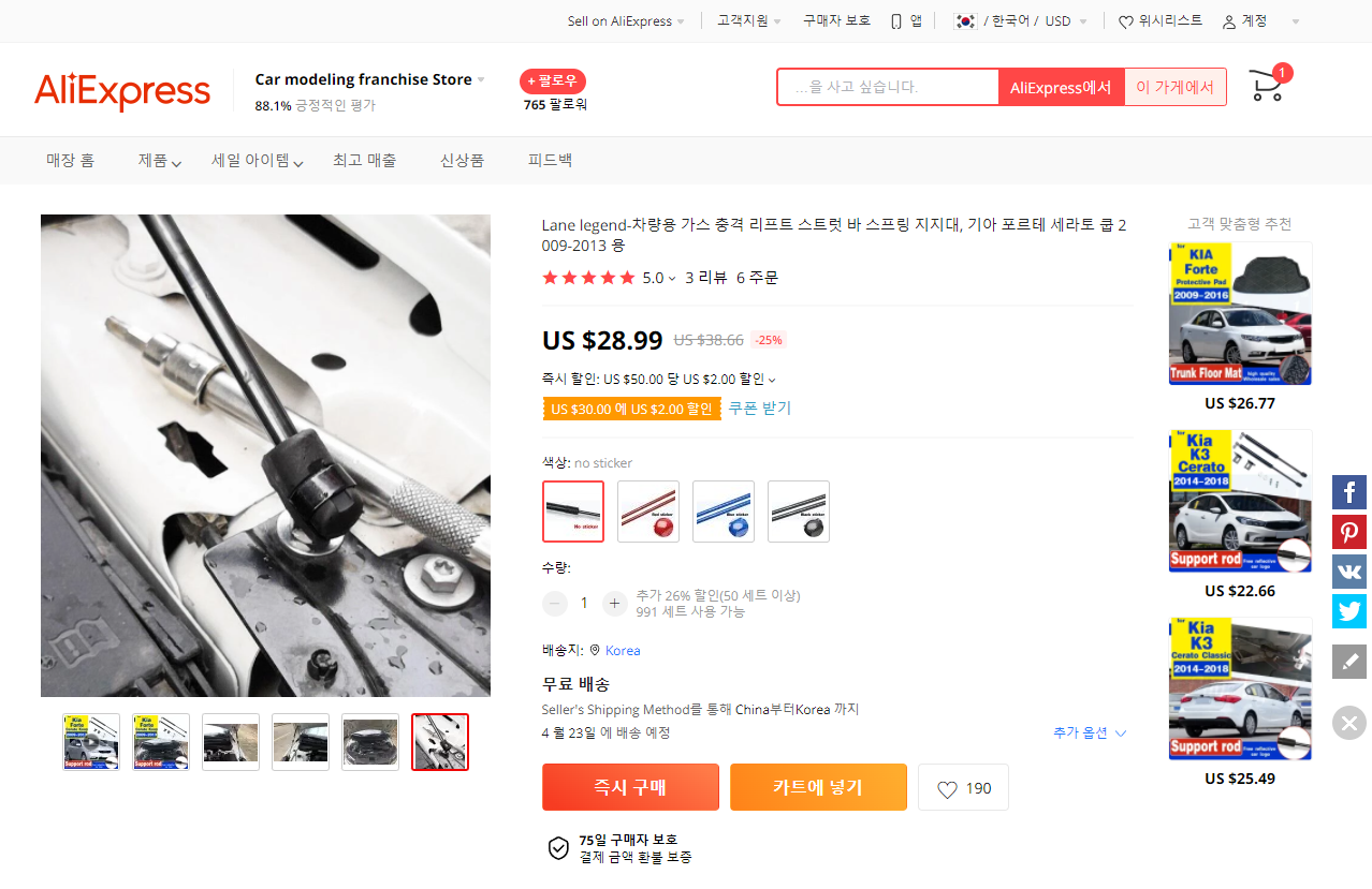 그래서 본넷쇼바를 구매하여 설치해보도록 하겠습니다!!