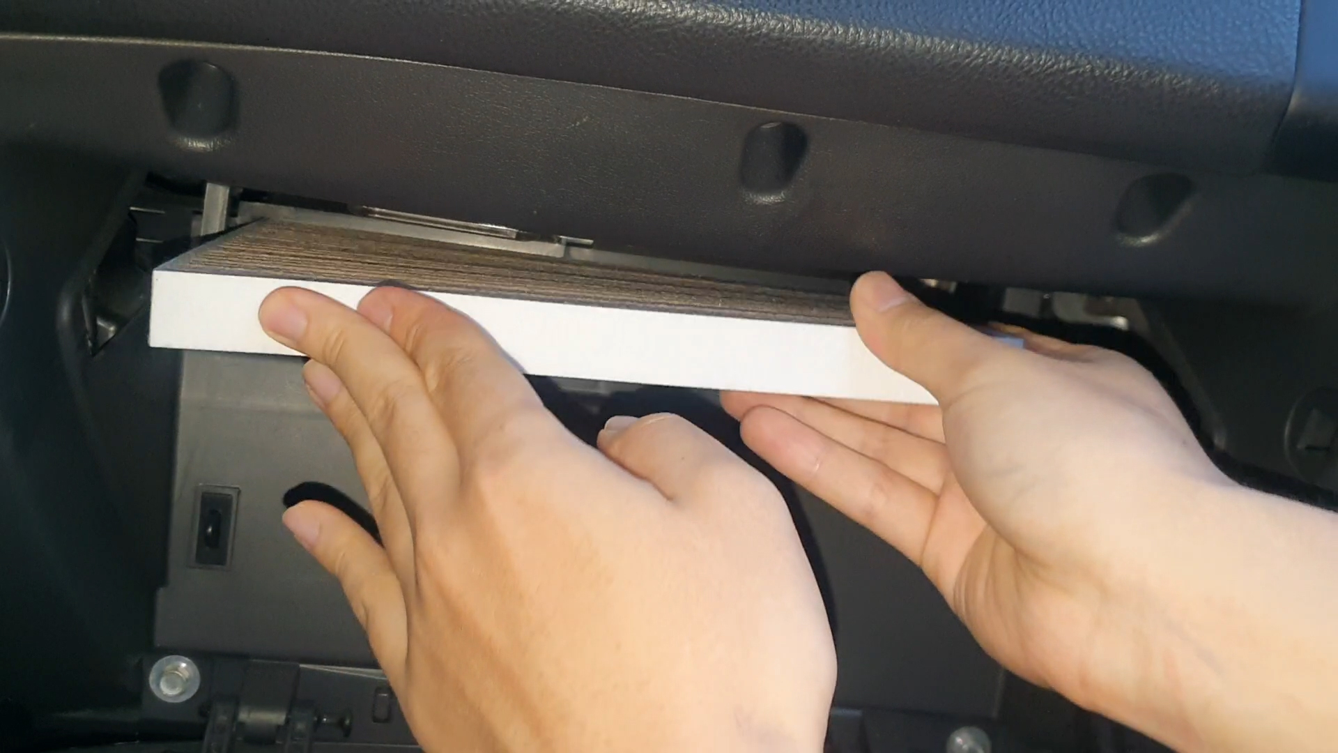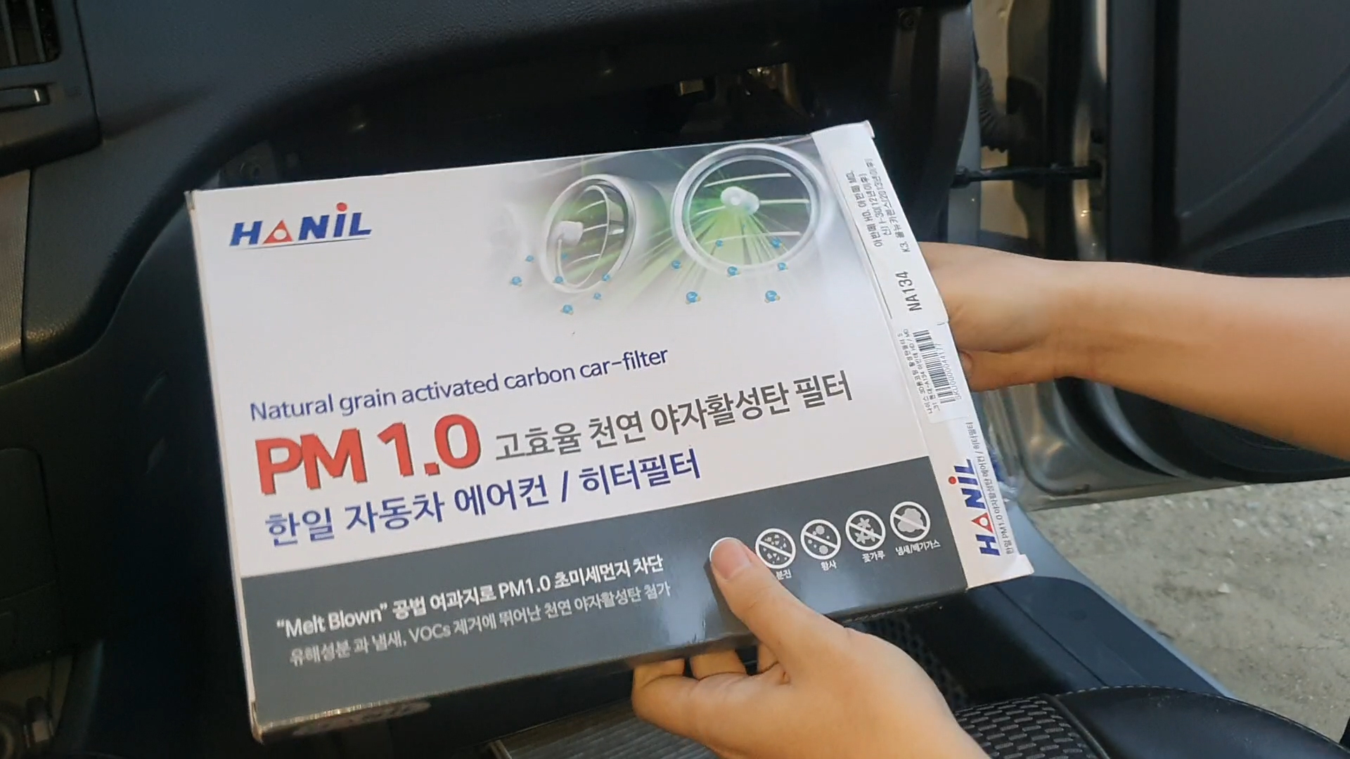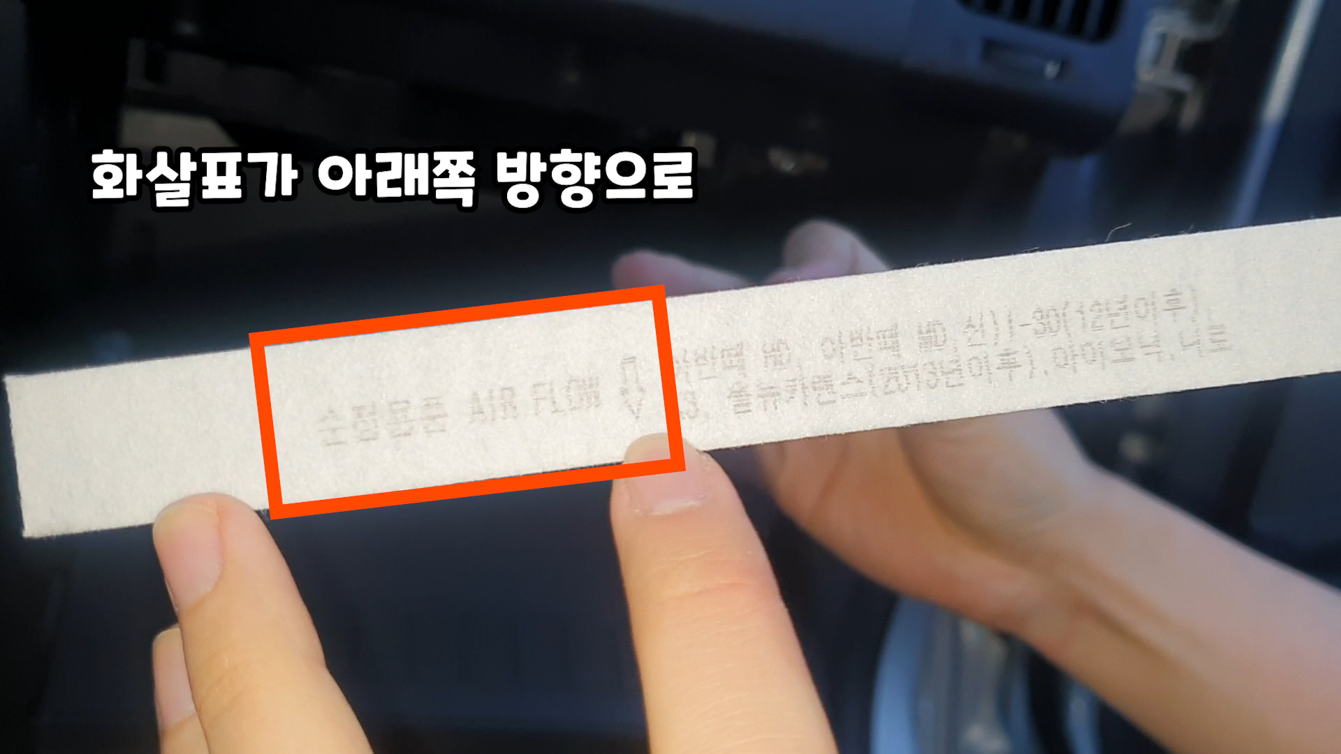 그러면 글러브박스가 아래쪽으로 내려가면서 에어컨필터있는 부분이 나옵니다