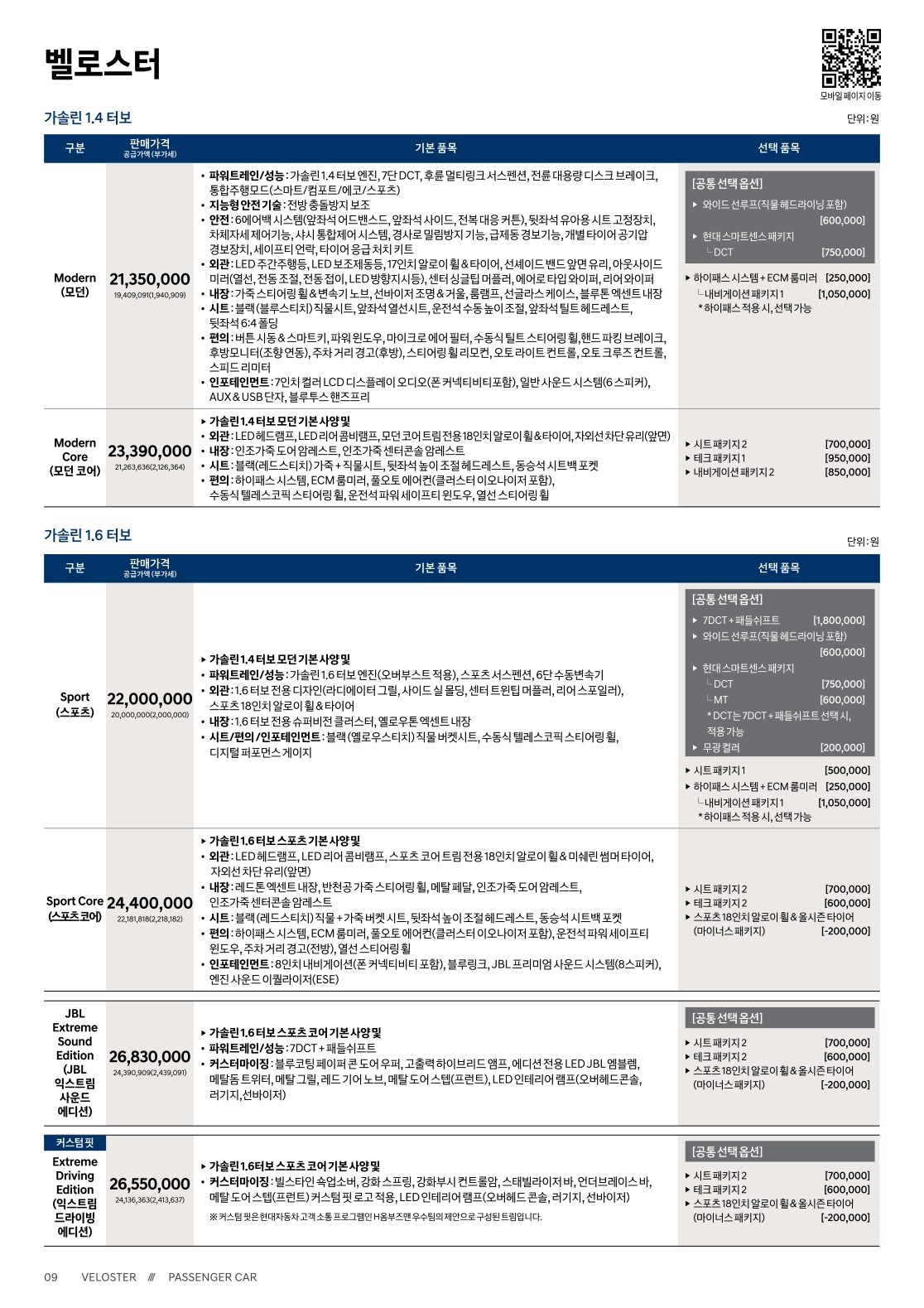 - 2020 벨로스터 & 벨로스터N 가격표 옵션표 -
