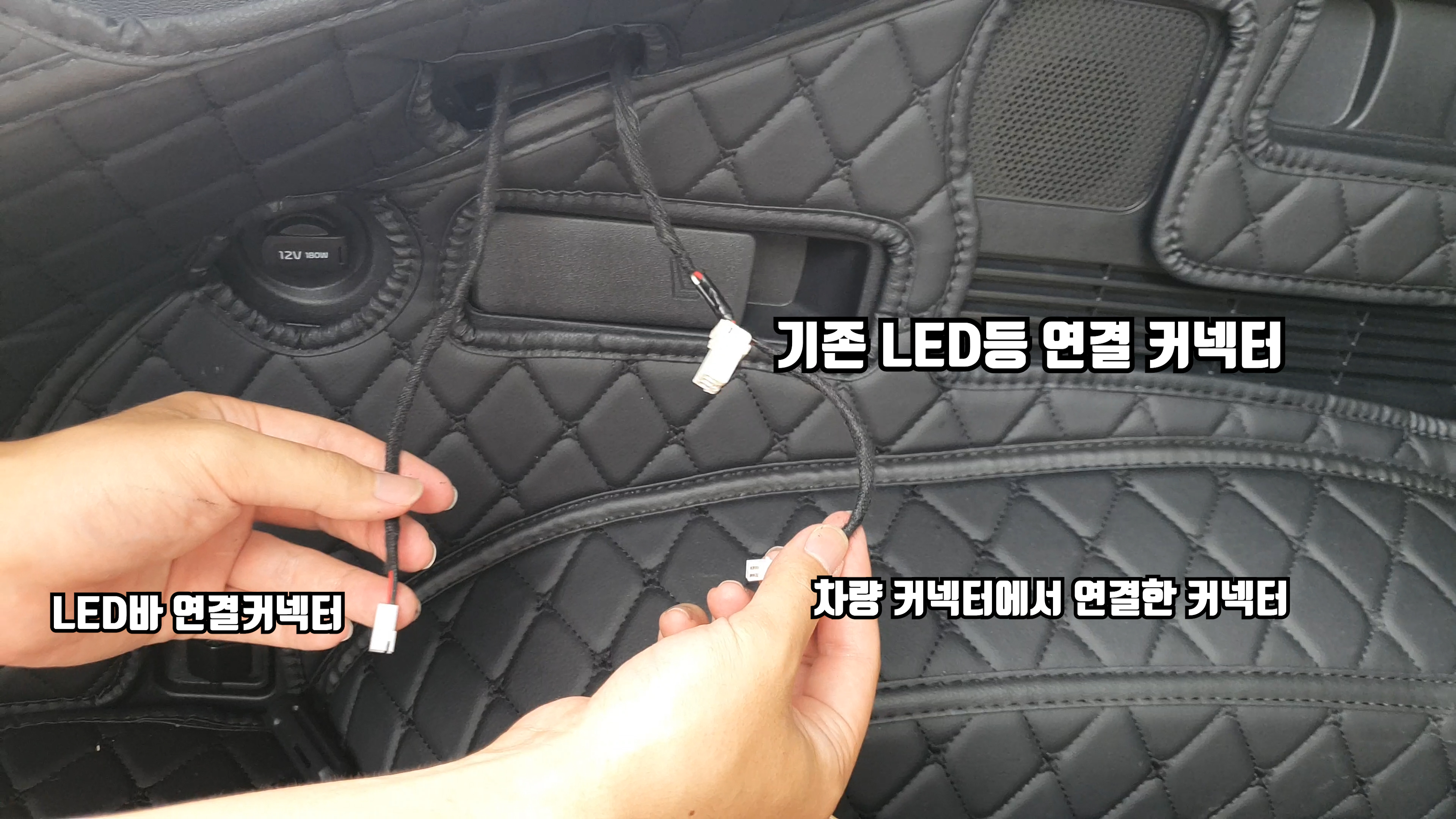 기존 LED등 구멍으로 선을 뺐으면 이제 LED바 선이랑 반대쪽 커넥터를 연결해줍니다