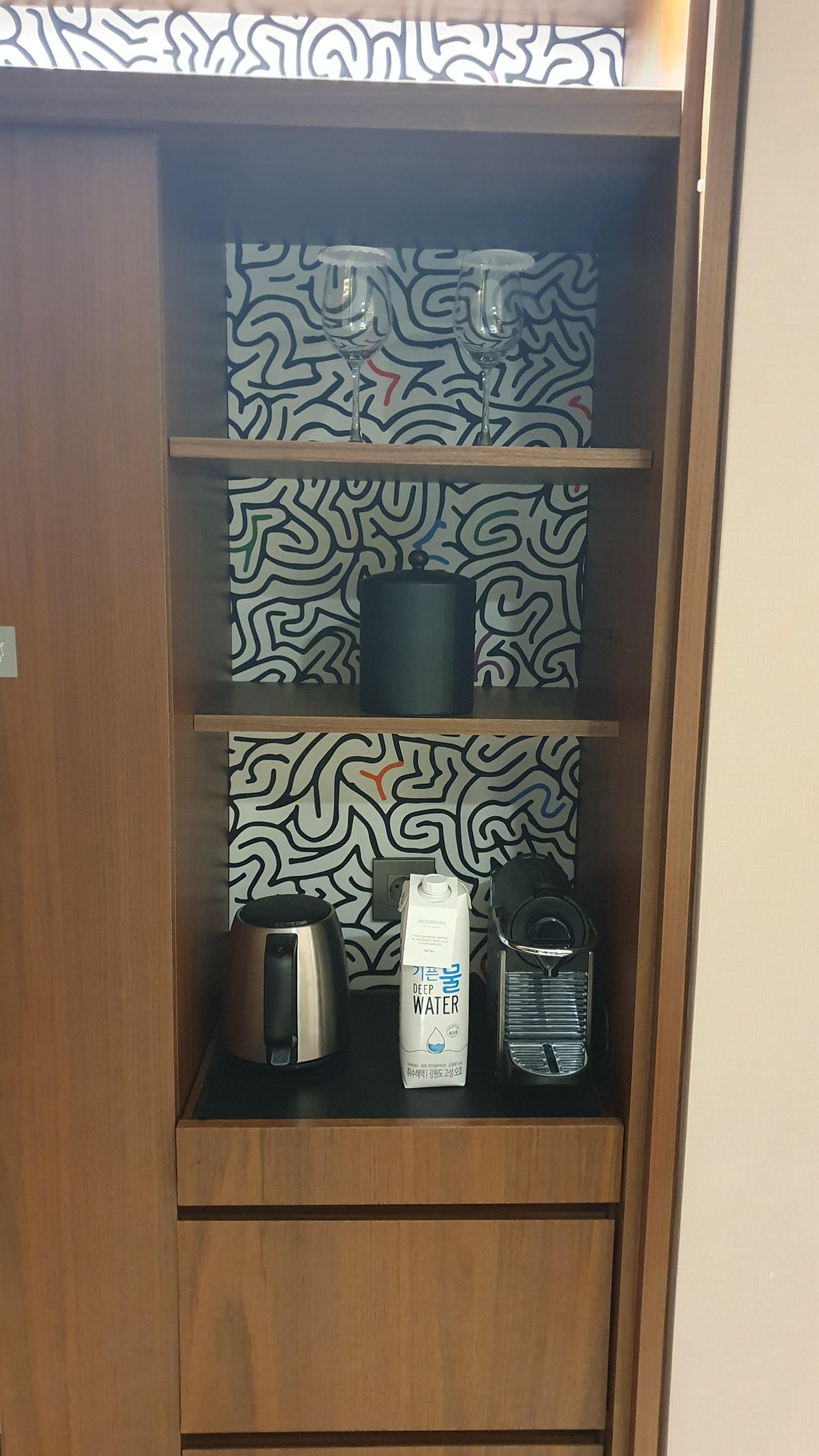 와인잔, 커피포트, 네스프레소, 캡슐도 준비되어있었고