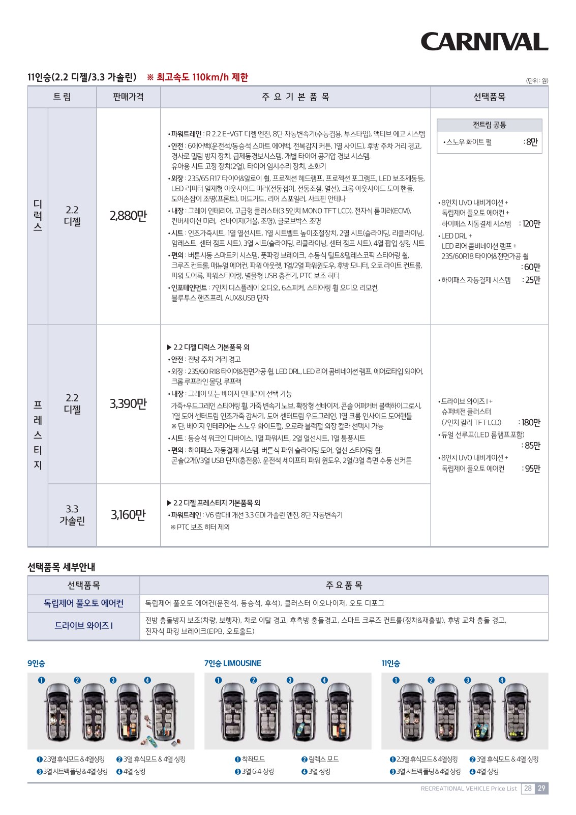 - 2020 더 뉴 카니발 가격표 옵션표 -