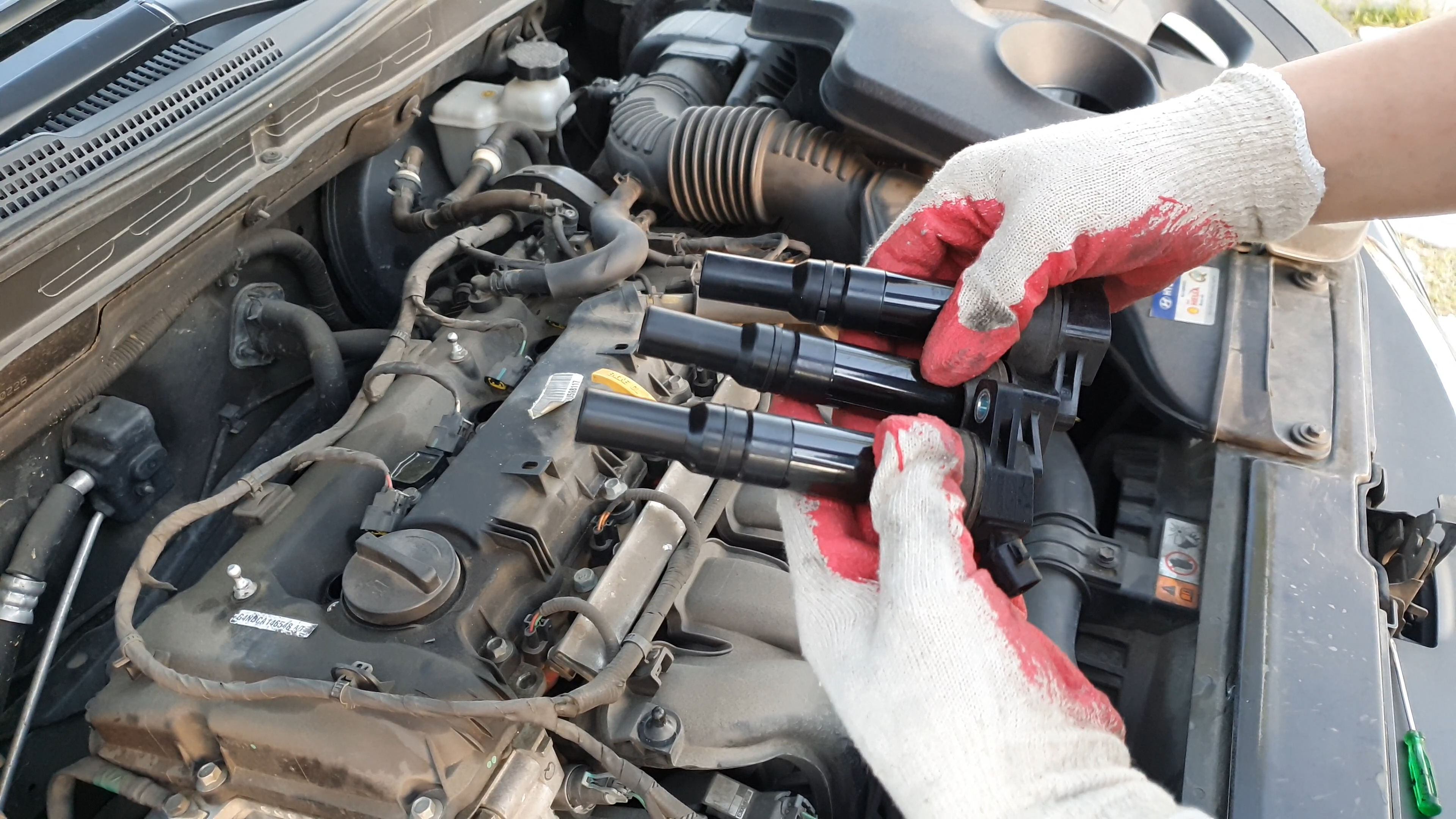 이렇게 YF소나타 차량에 점화플러그를 교체해보았습니다