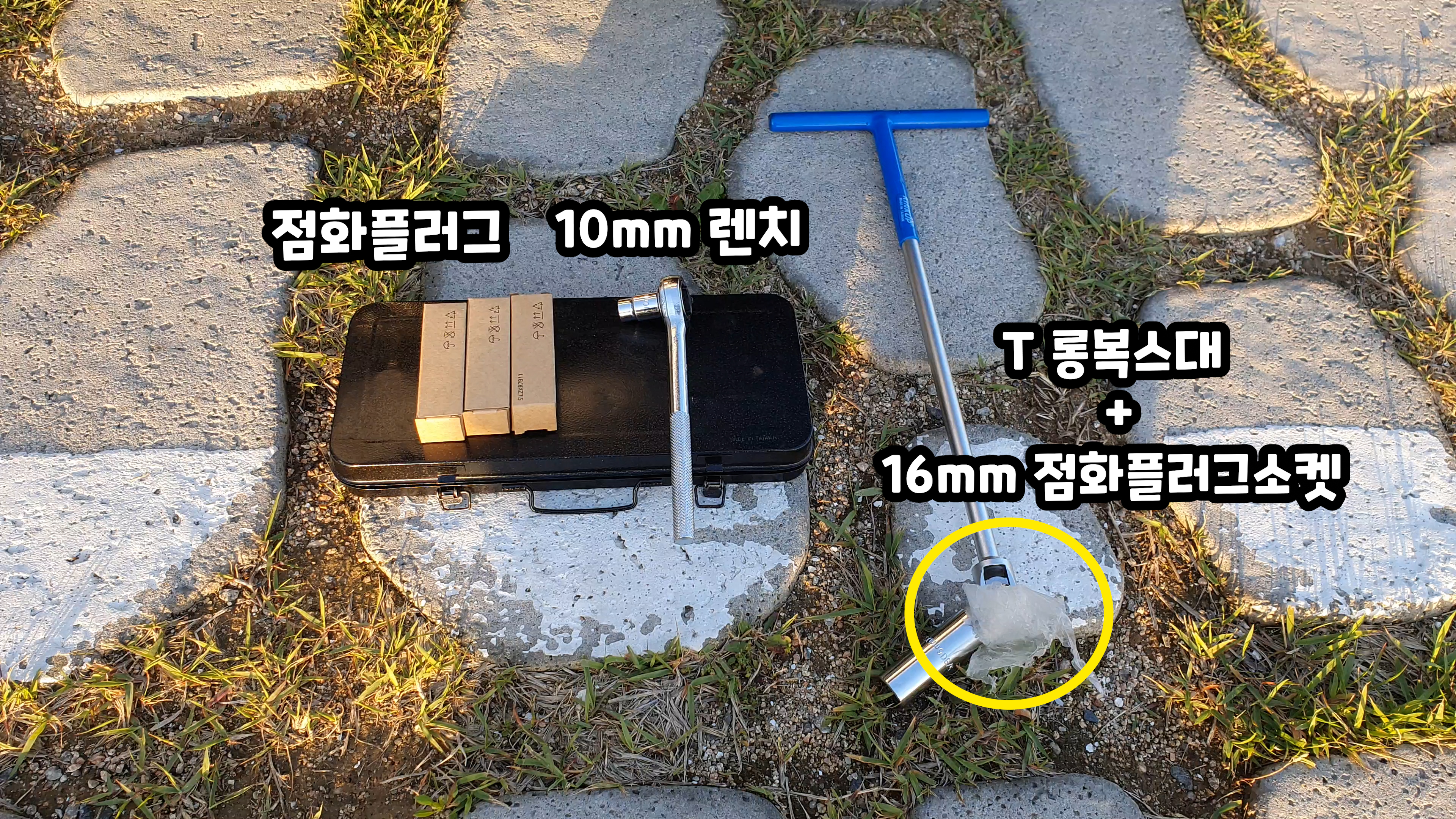 준비물은 점화플러그, 10mm렌치, T자형 롱복스대와 16mm점화플러그소켓이 필요합니다