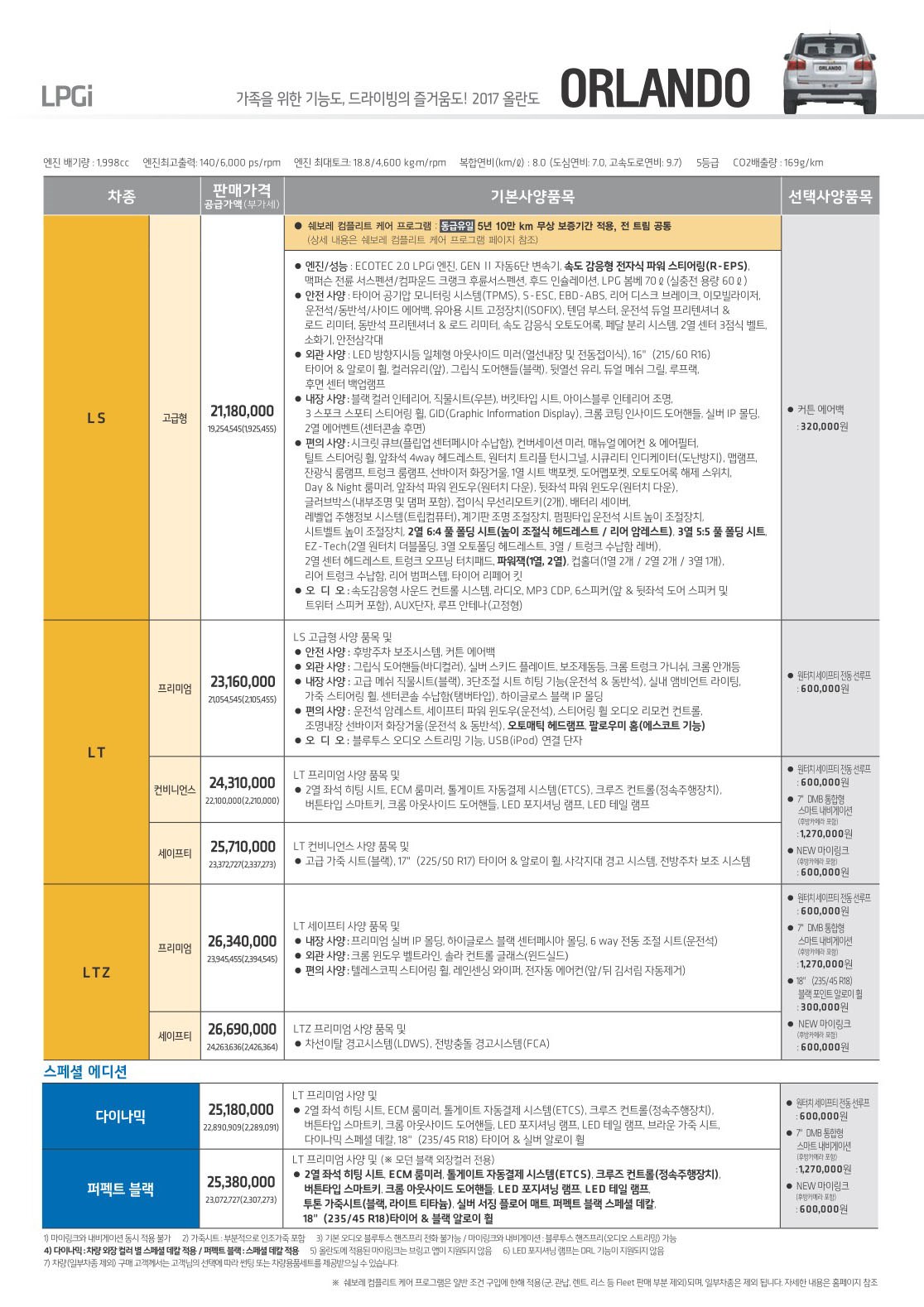 올란도는 주행성능이 뛰어나다는 평가를 받고 있습니다.