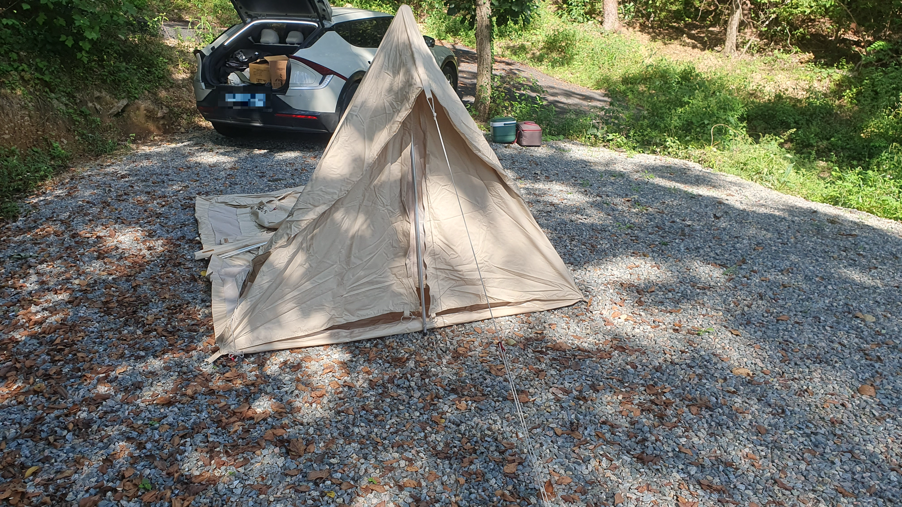 텐트를 위치할 곳에 맞춰서 쭉 펴줍니다
