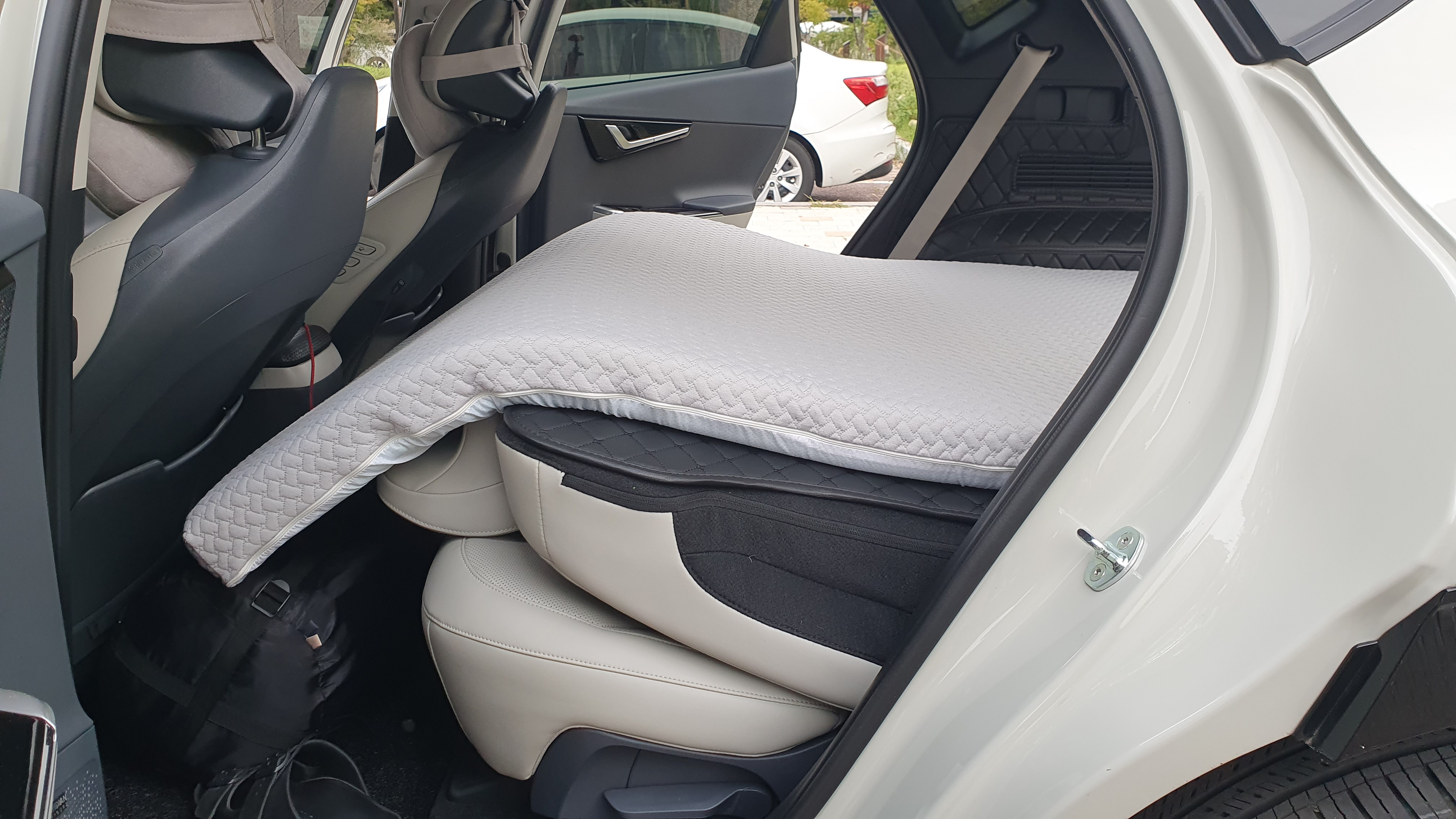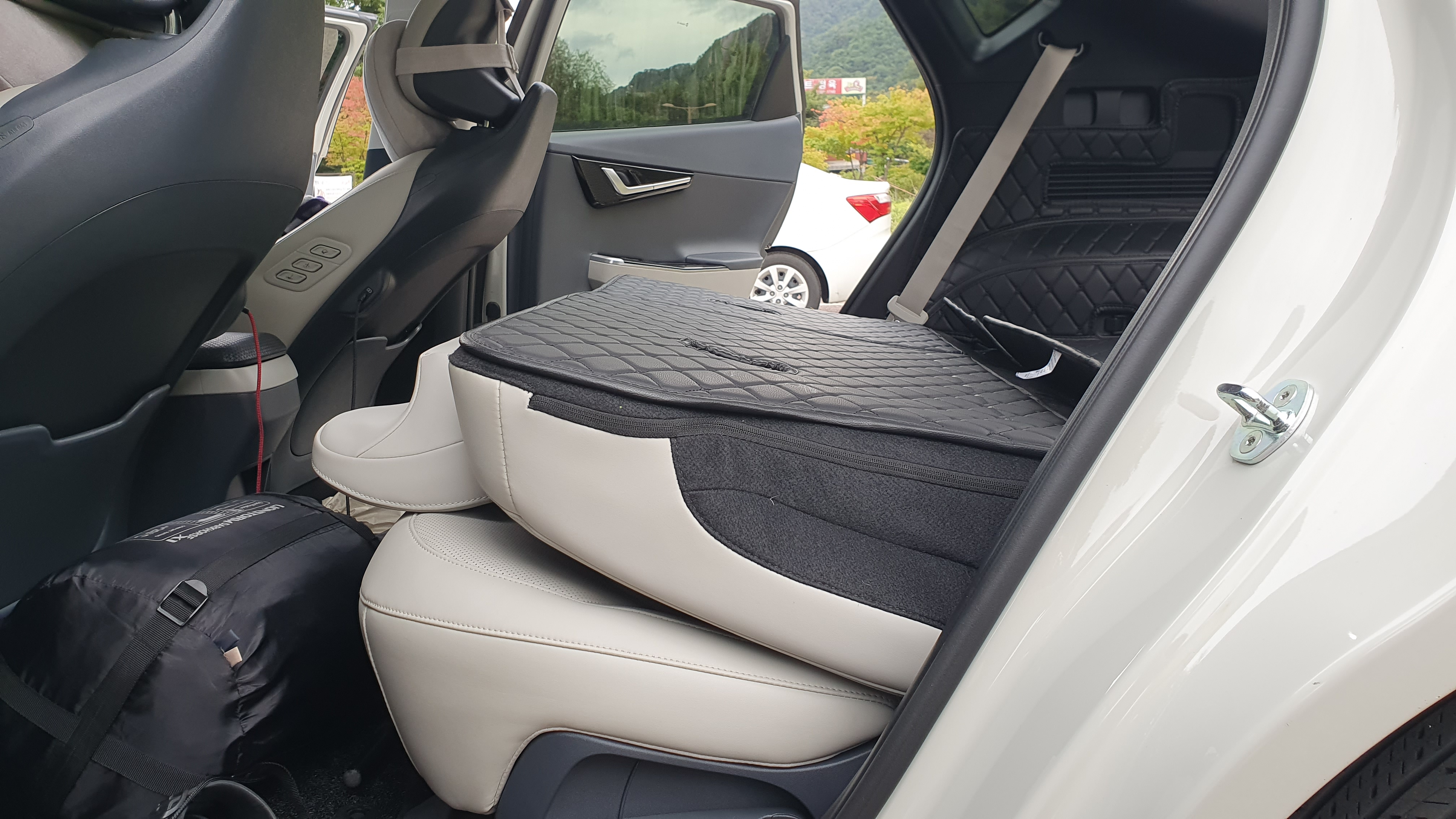 뒷자리 시트 등받이 프레임을 가공해서 평평하게 만들거나 하는 방법들이 있습니다