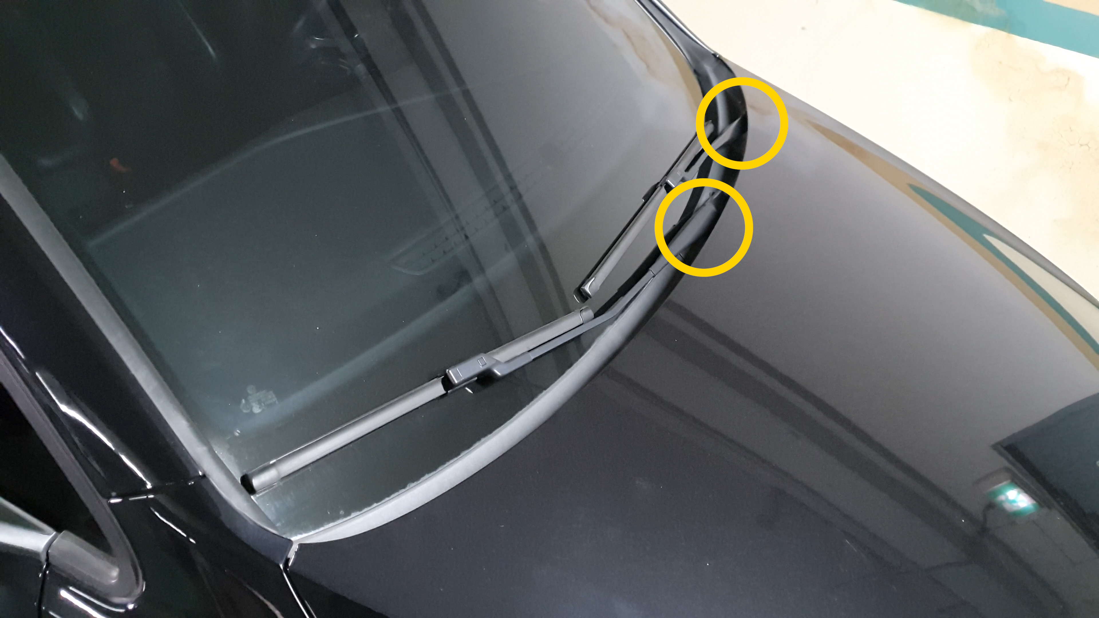 요즘 차량들은 본넷 안쪽으로 와이퍼암이 위치하여