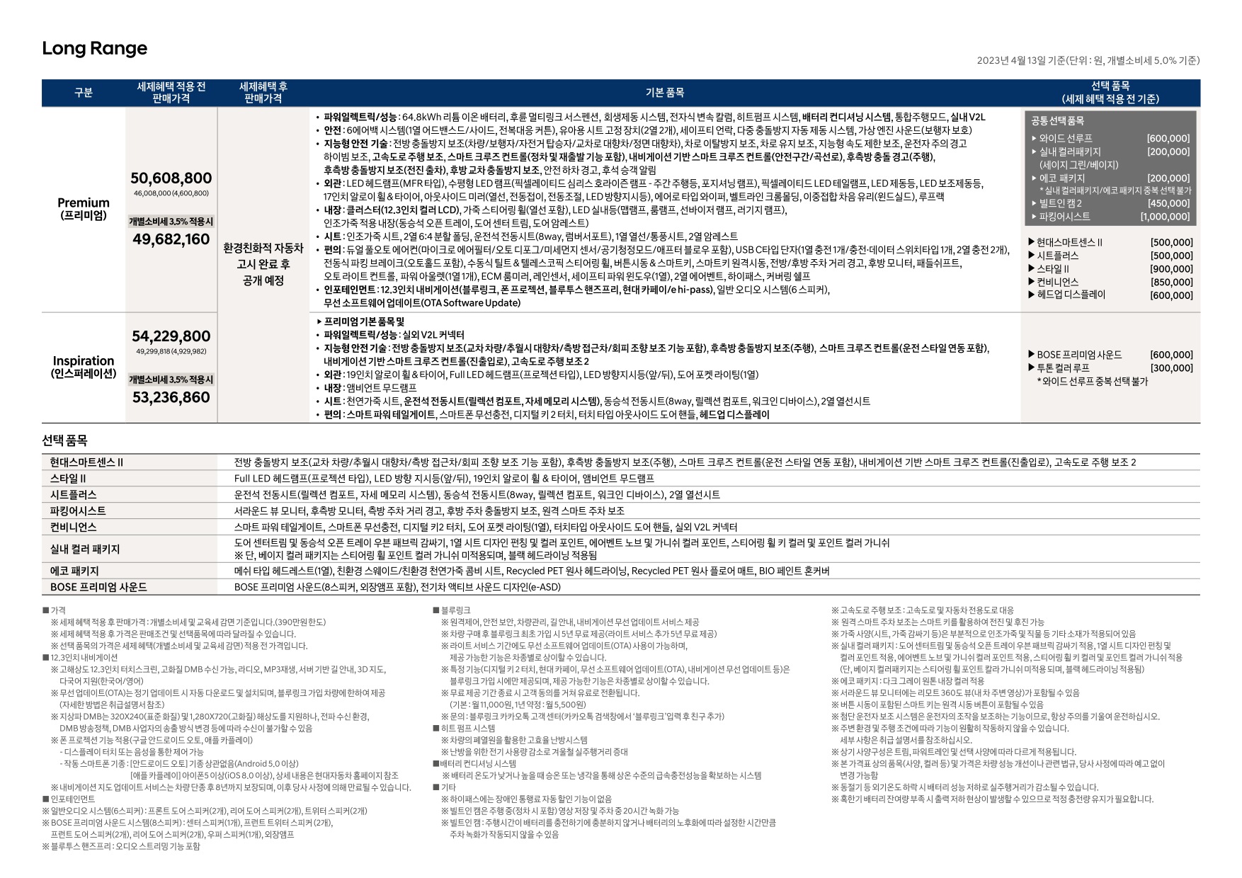 - 2023 디 올 뉴 코나 EV 가격표 옵션표 -