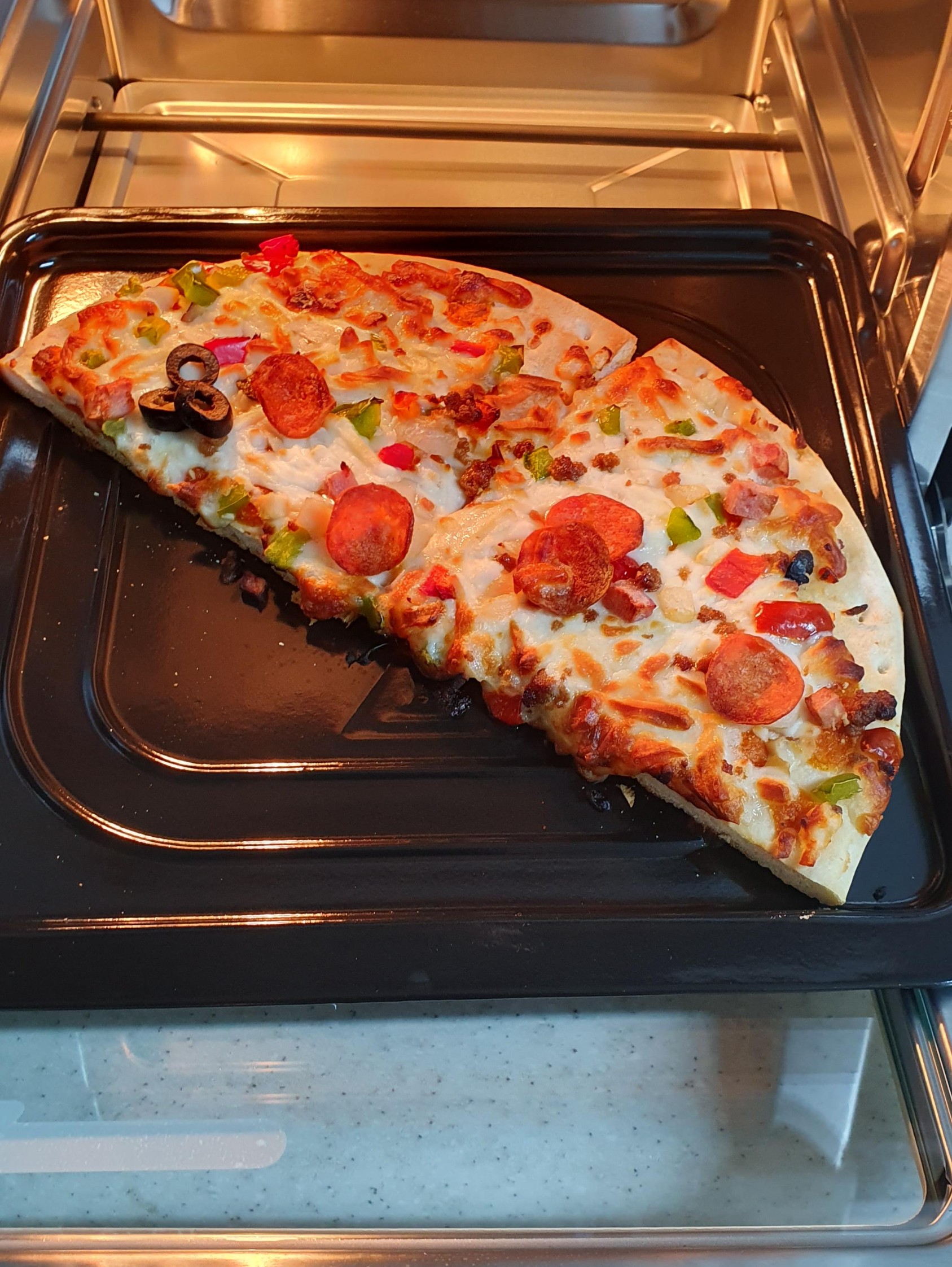 지름이 10.5cm정도 되는 피자를 오븐팬에 올려보면