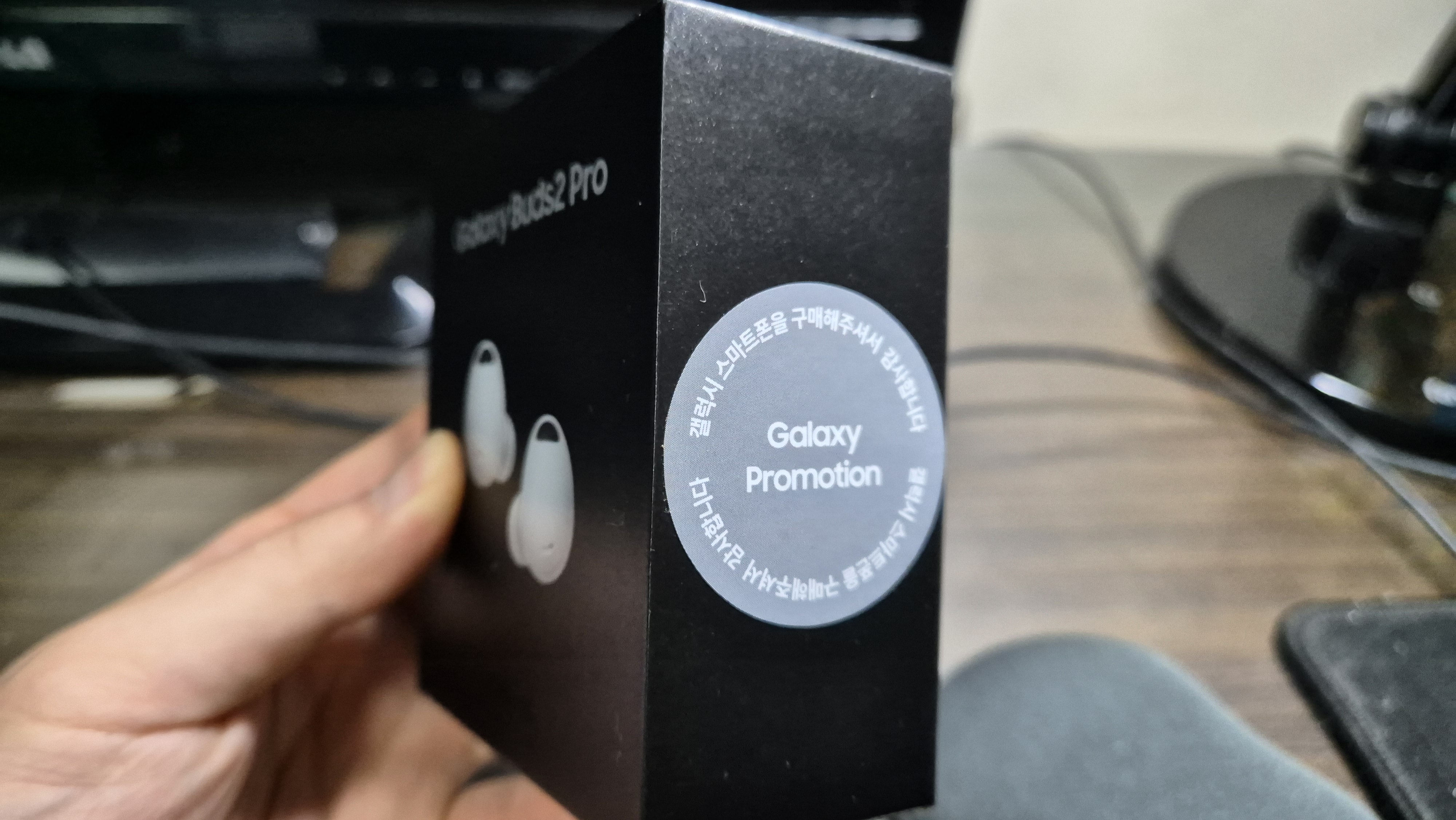 버즈2프로는 케이스 옆에 갤럭스 프로모션 스티커가 붙어있구요