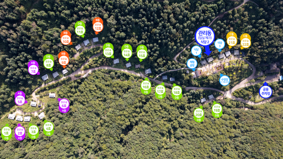 저희 숙소 위쪽으로 1동이 위치한곳으로 길을 따라서 올라갔다 내려왔네요
