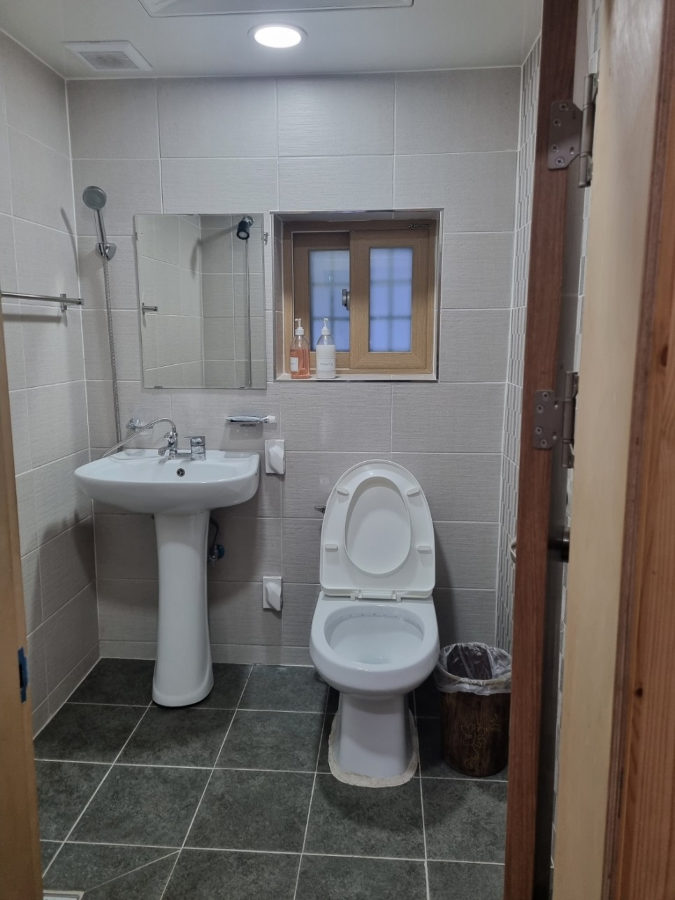 방안에는 작은 화장실이 있는데 변기와 세면대가 갖춰져있네요