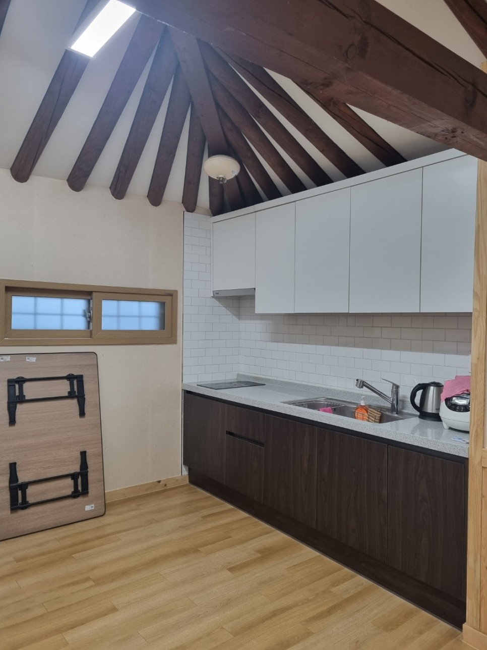 문을 열고 들어오면 주방과 거실이 나옵니다
