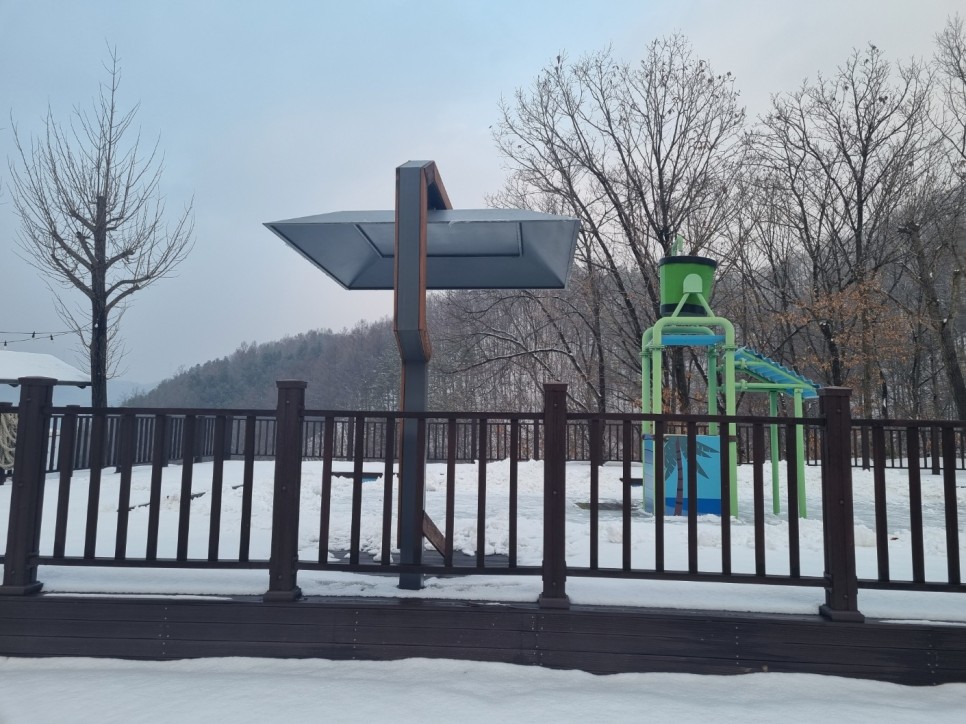 관리동 앞쪽에는 물놀이시설과 그네, 쉴 수 있는 정자가 있습니다