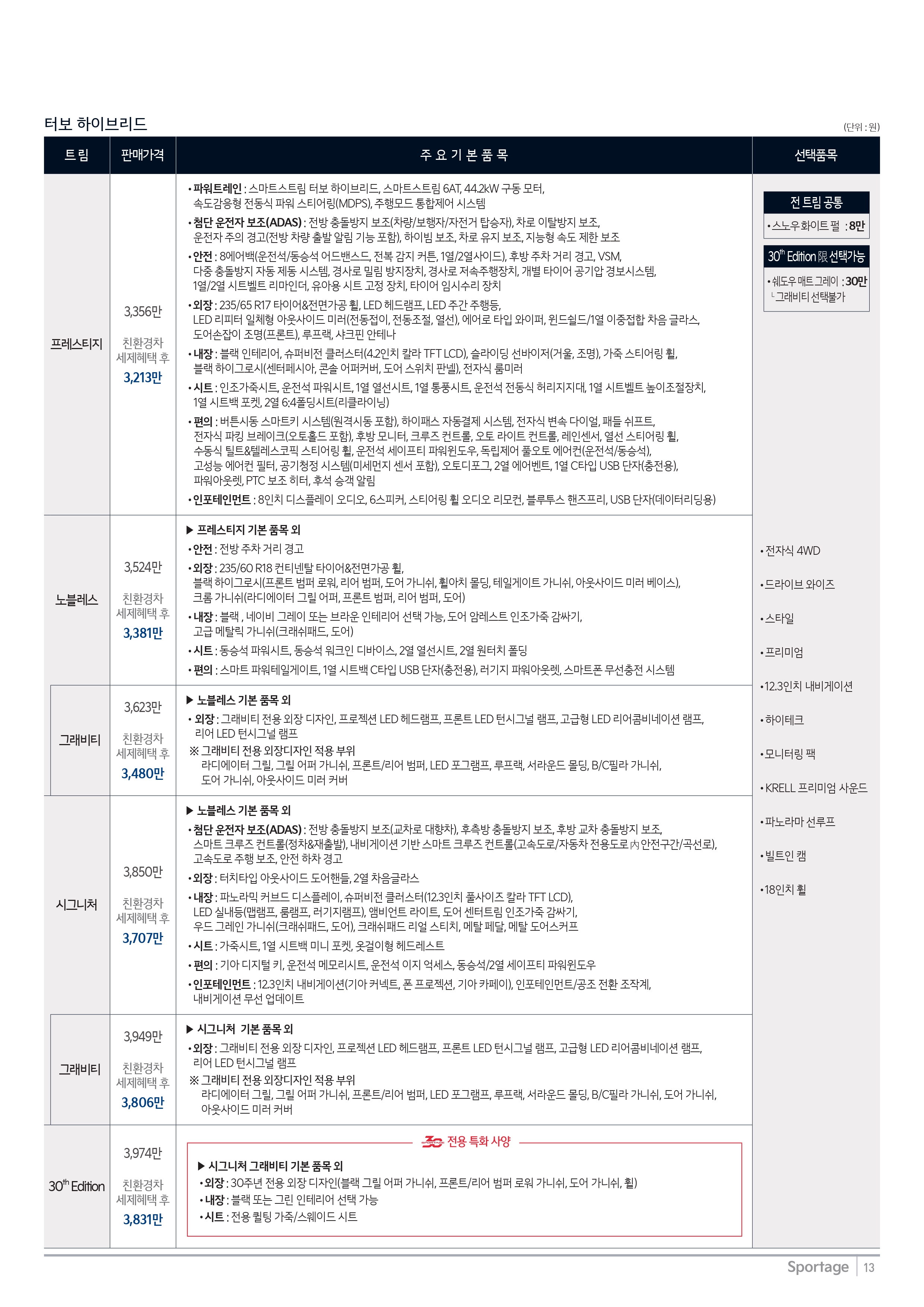 [ 2024 디 올 뉴 스포티지 가격표 옵션표 ]