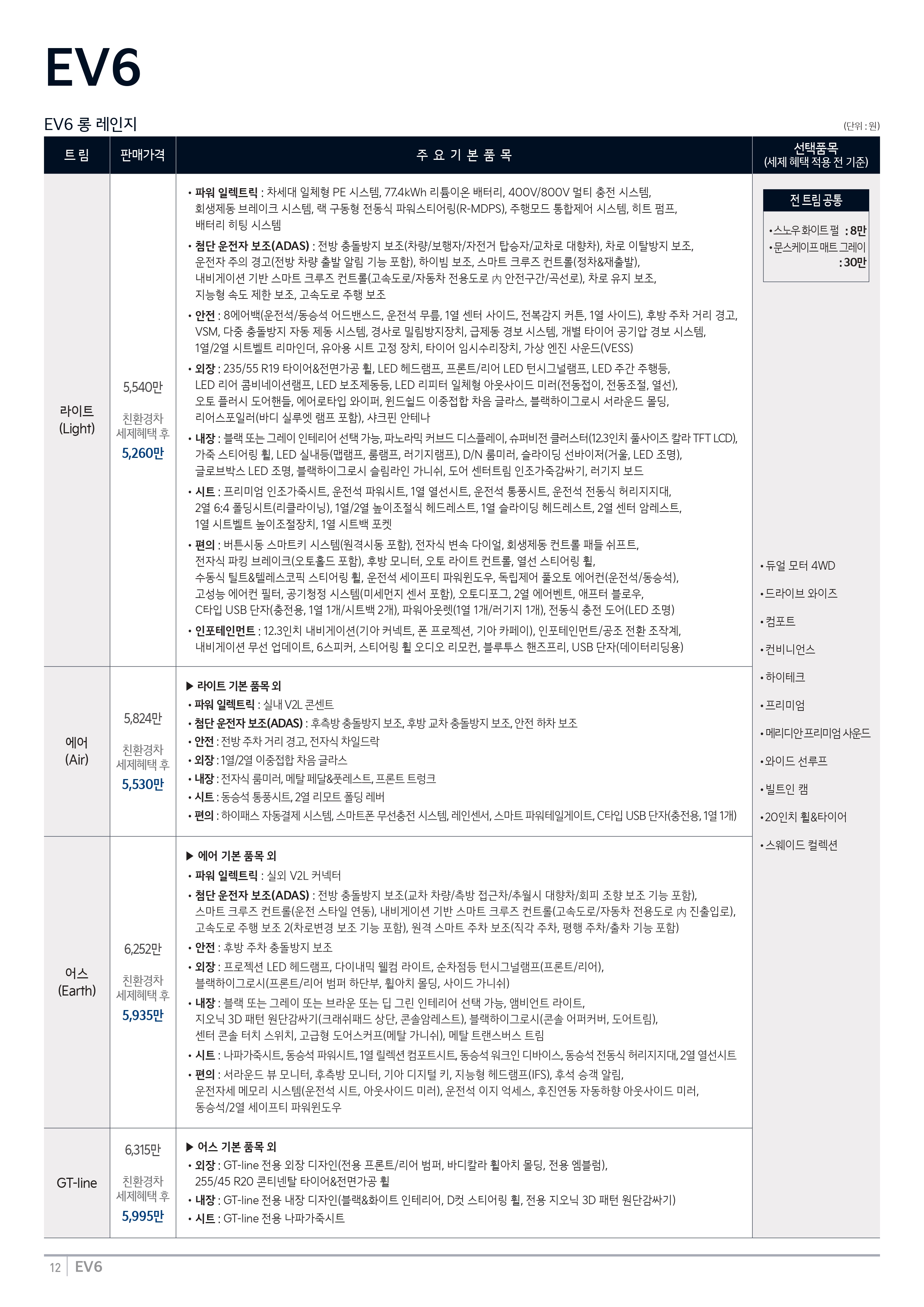[ 2024 EV6 가격표 옵션표 ]