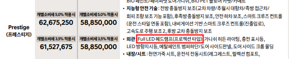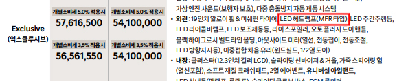 가격표를 보면 트림에 따라서 헤드램프 타입이 다른 것을 볼 수 있습니다