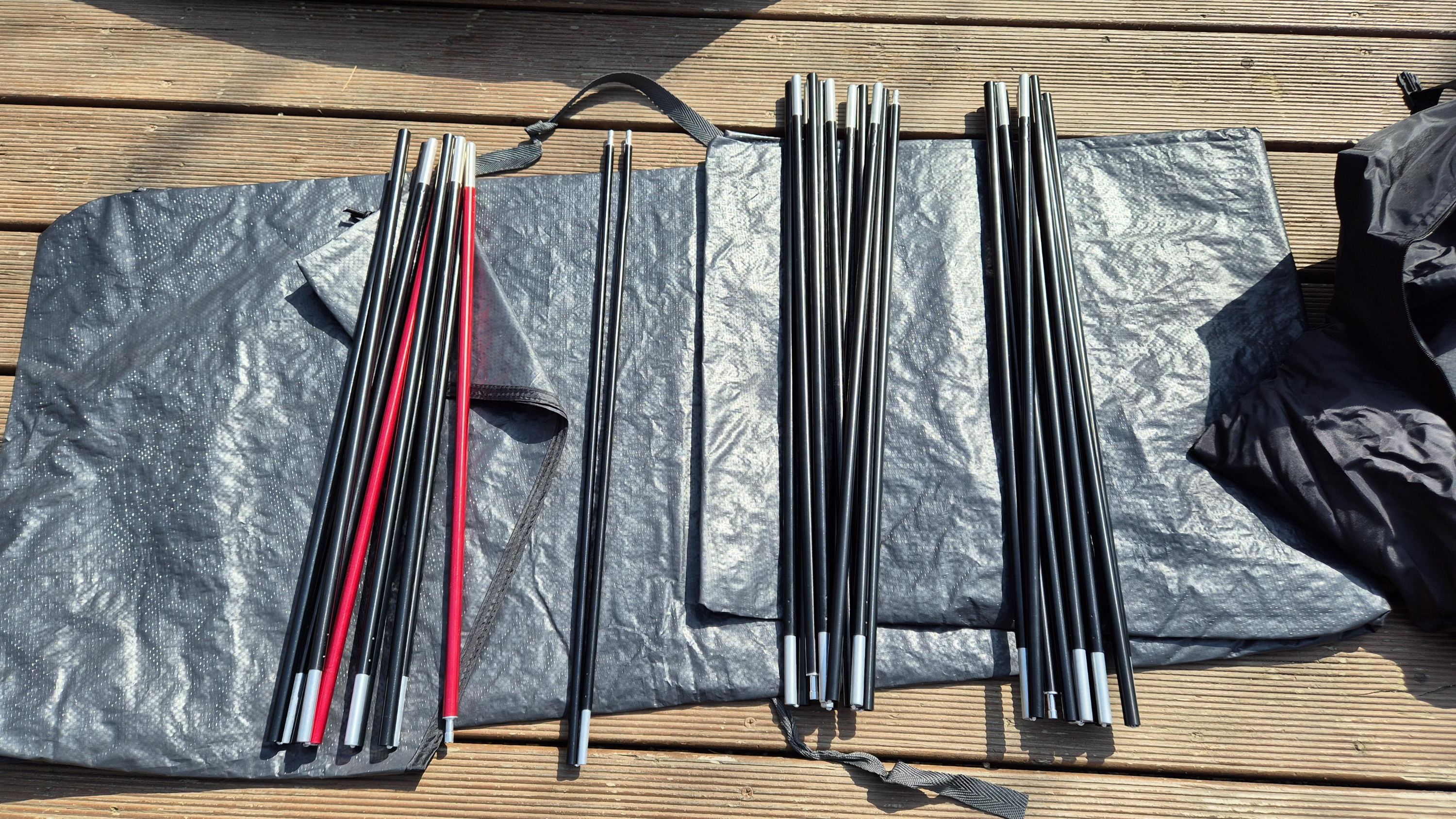 루프쪽에 작은폴대도 끼워주고 바닥면에 폴대 고정부분에 폴대를 끼워서
