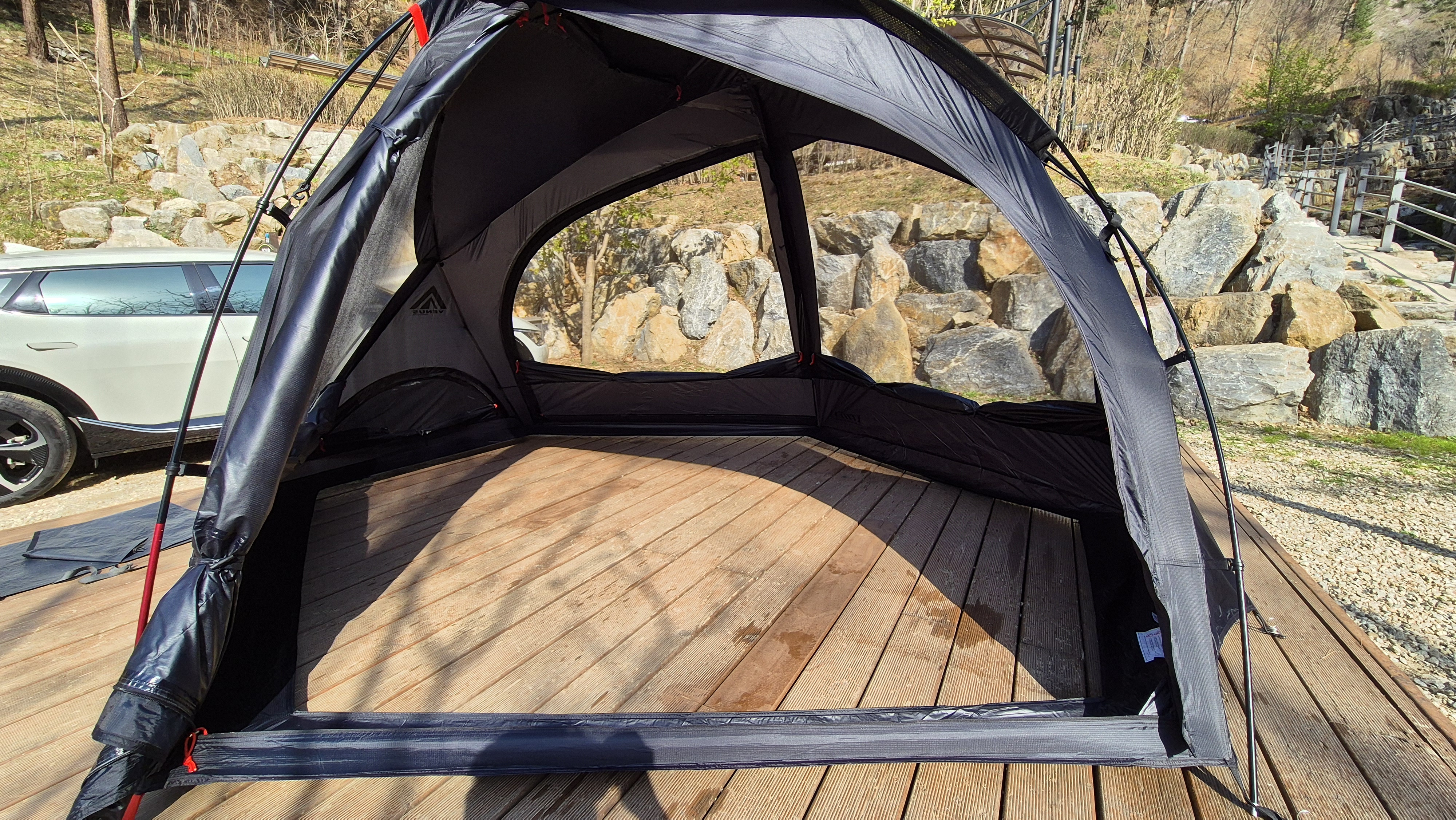 자 이렇게 동봉된 그라운드시트를 쉘터 안쪽 고리에 걸어서 텐트로 좌식으로 이용할 수 있구요