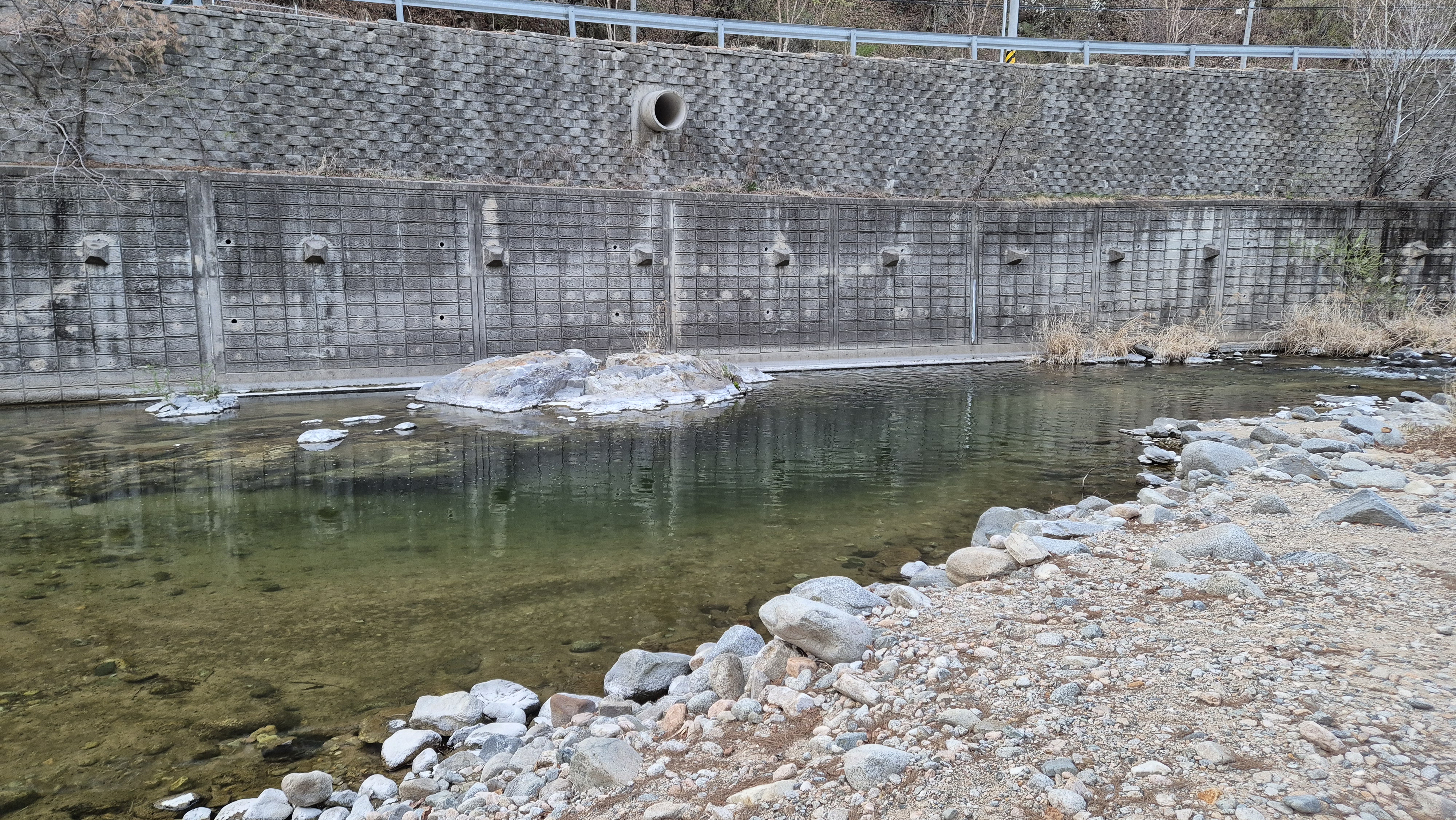 옆쪽으로는 계곡? 이라기 보다는 계곡물이 조금 흐르는정도의 물길이 있구요