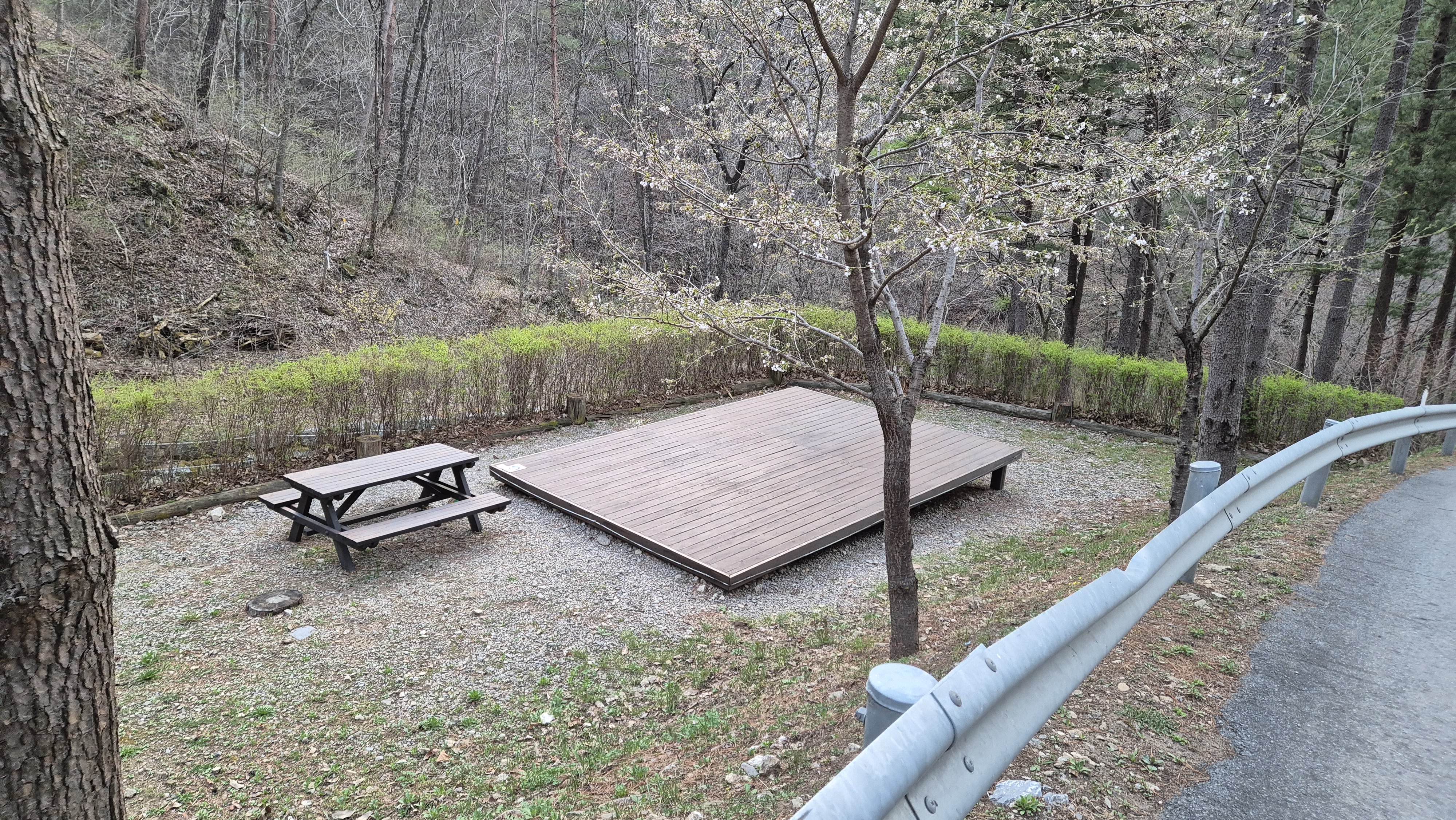여기는 오르막길 중간에 위치한 3.4.5번 사이트와 주차장입니다