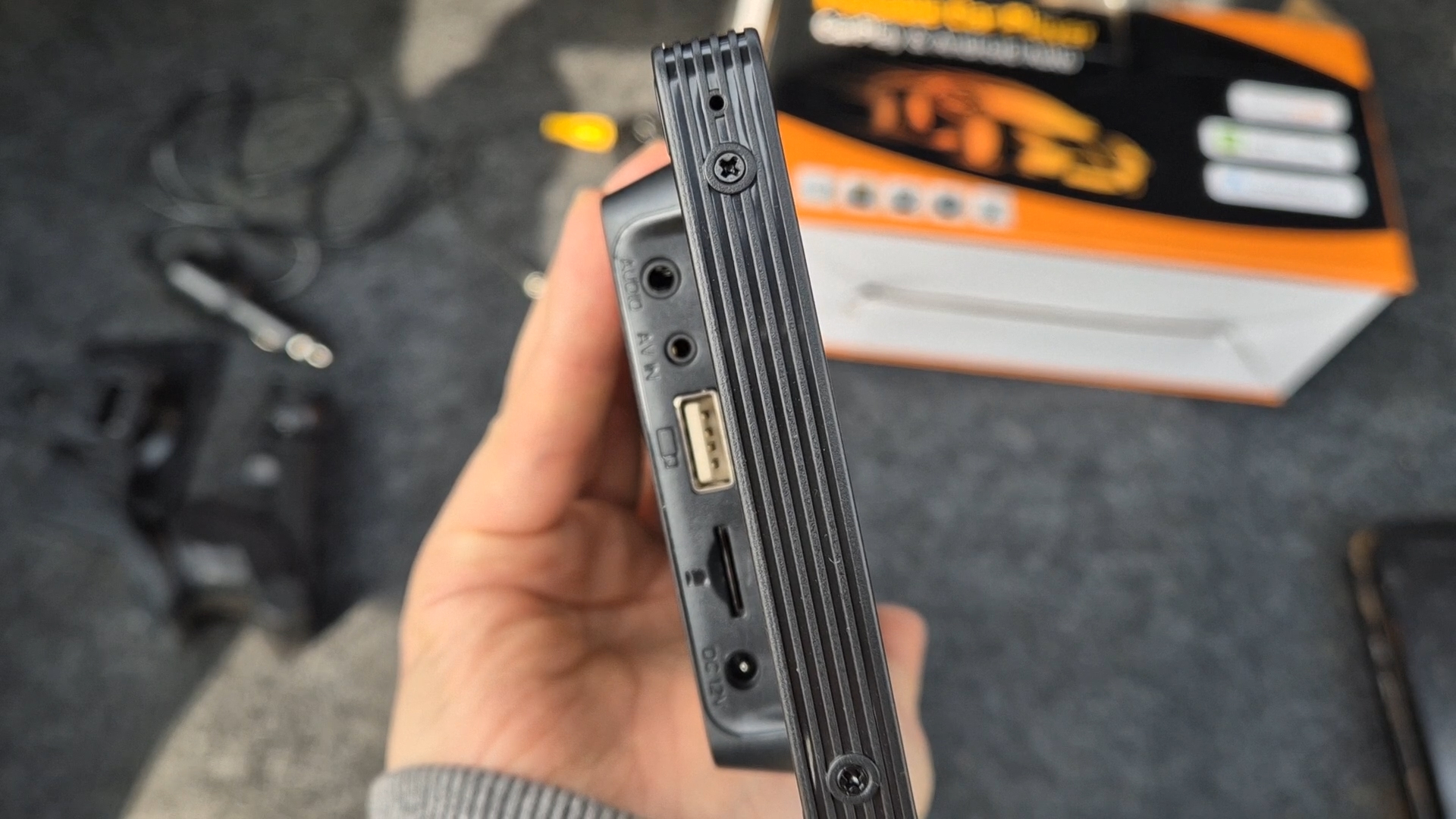 측면에는 각종 포트가 있고 usb와 sd카드 슬롯을 통해 음악이나 영상도 재생이 가능합니다