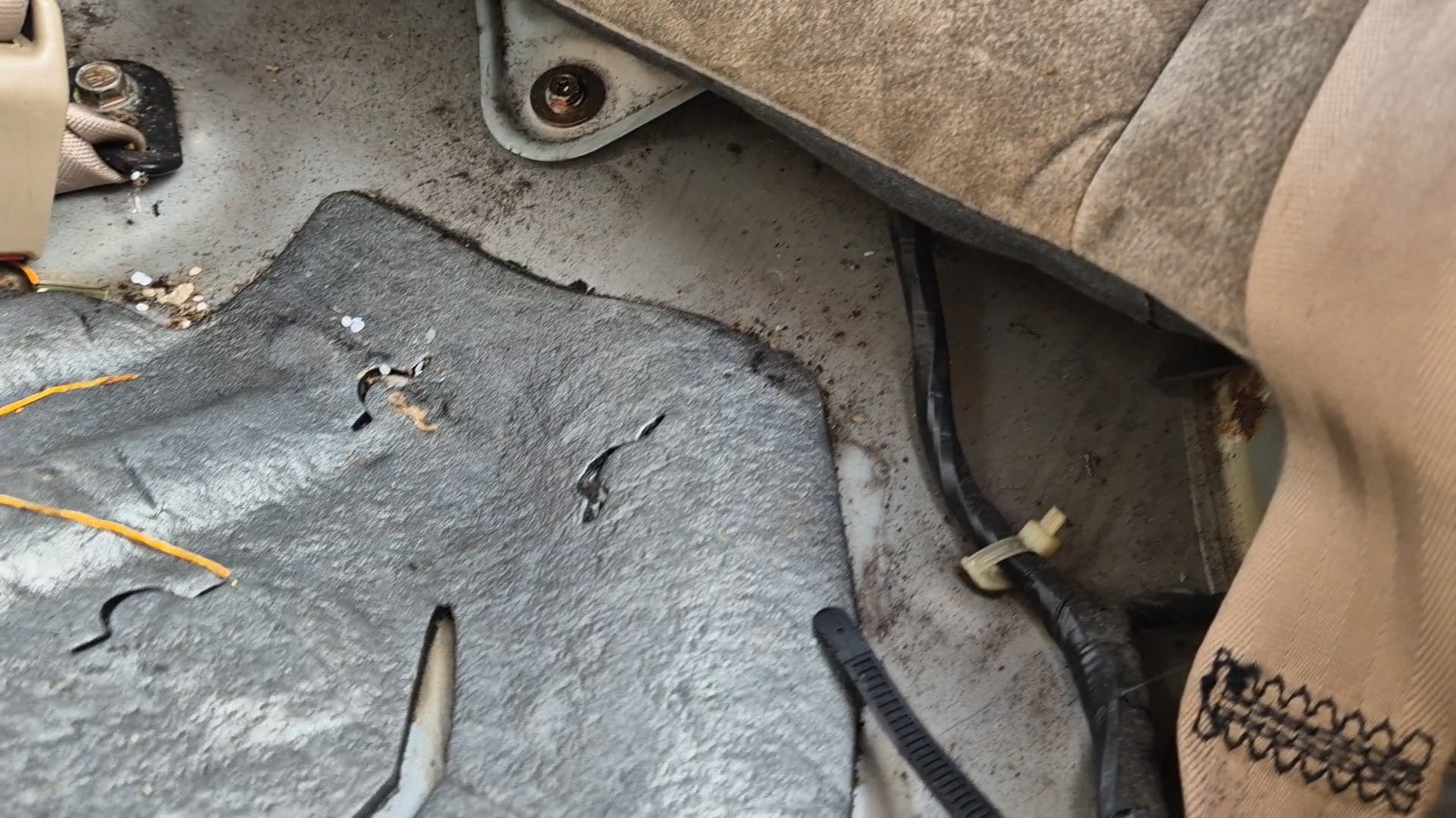 뒷 좌석을 탈거해야 하는데 시트 아래쪽을 보면 이렇게 고정시켜주는 부품이 있습니다
