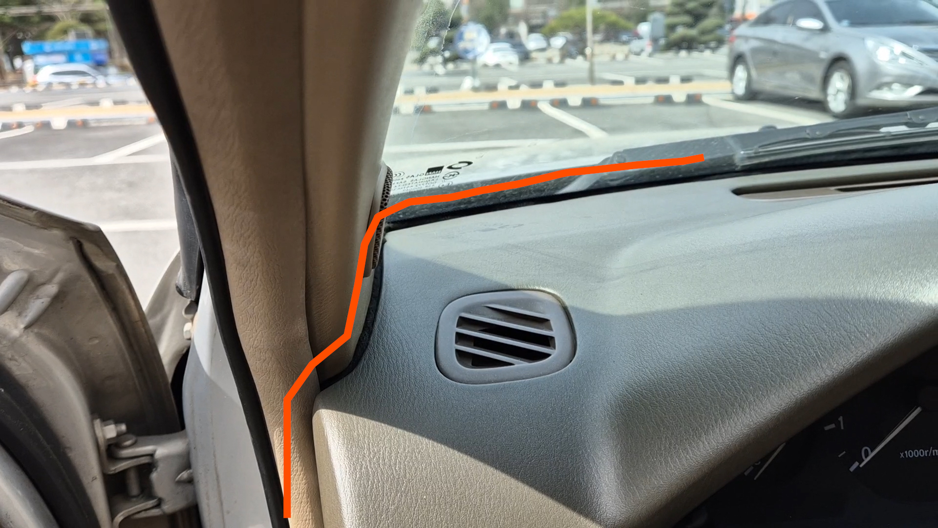 웨더스트립을 탈거하고 사진처럼 틈 사이로 배선을 위치시켜줍니다
