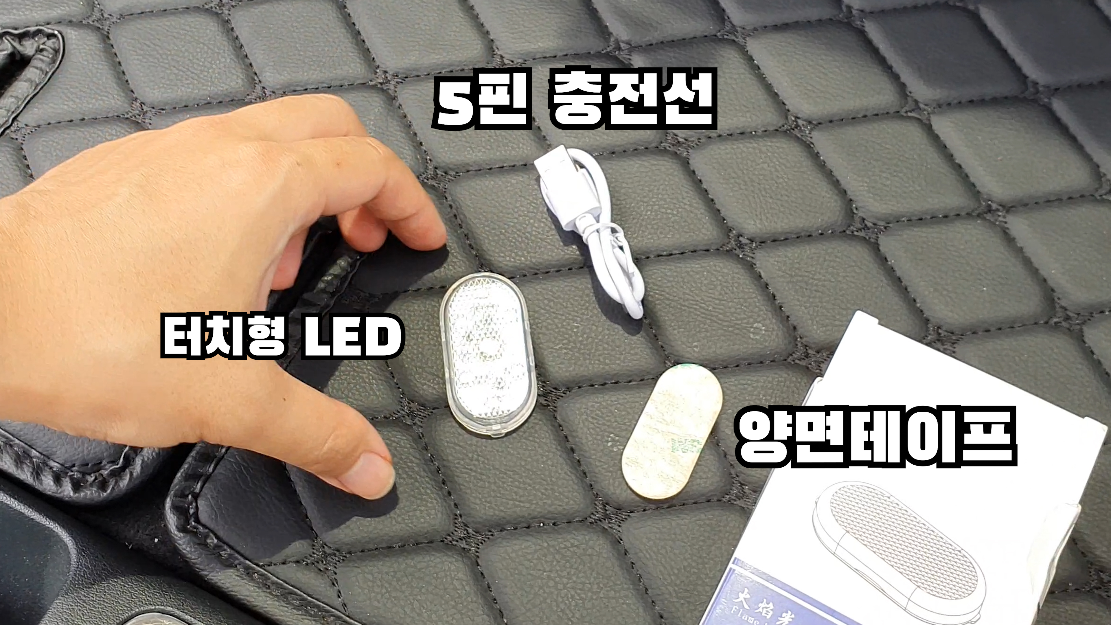 제품을 개봉하면 LED본품, 5핀충전선, 양면테이프가 동봉되어있습니다
