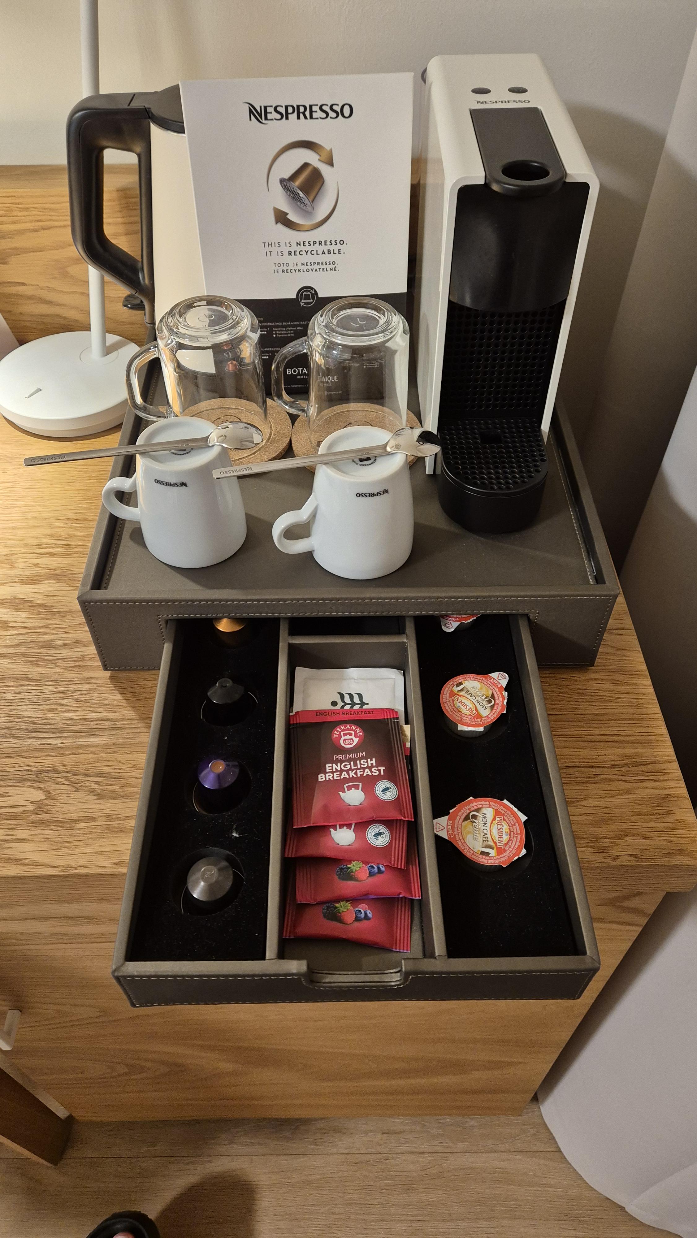 커피포트와 캡슐커피머신이 있습니다 물론 캡슐커피도 같이 비치되어있구요