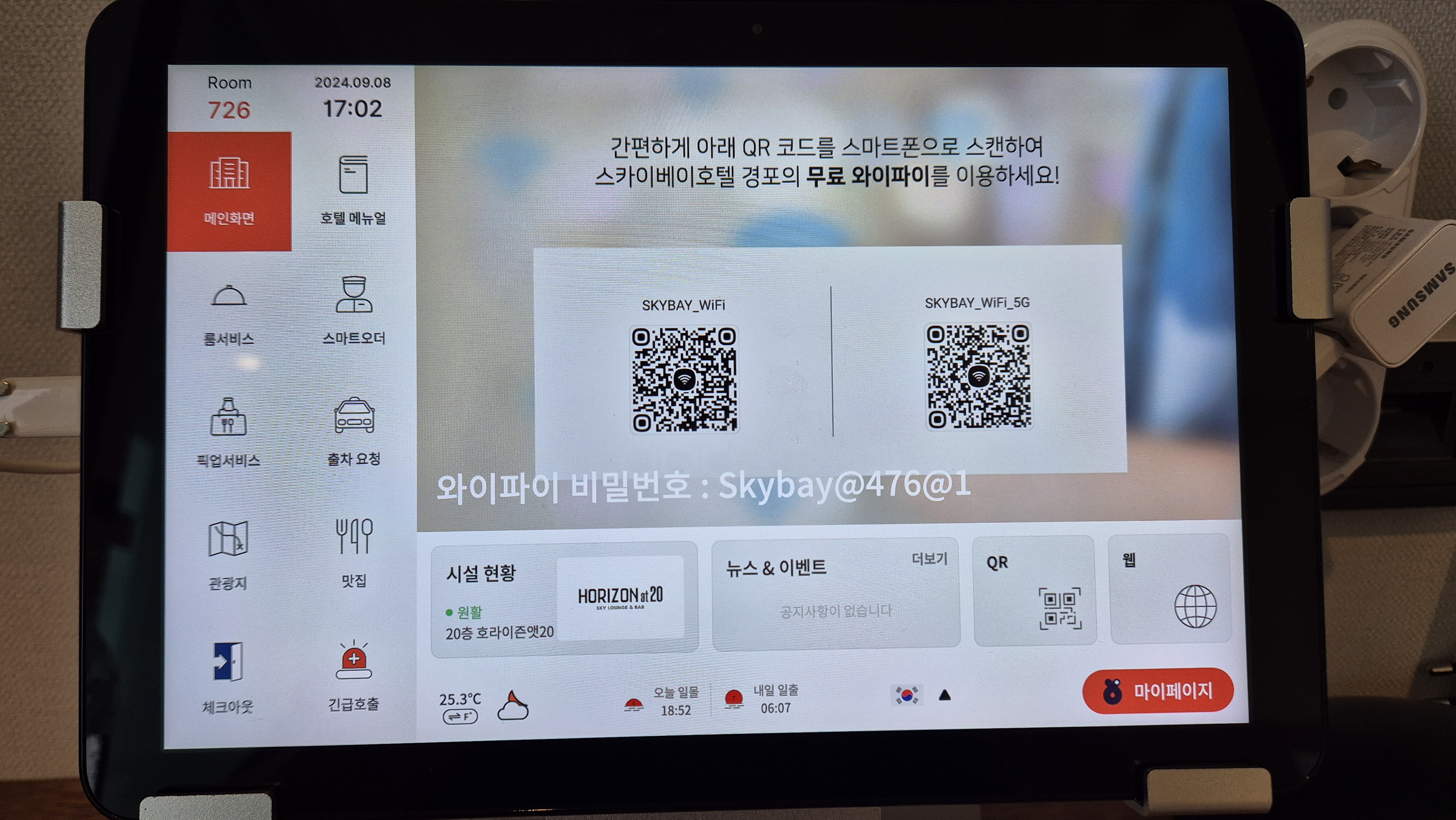 객실에 부족한 물품이 있으면 요청을 할 수 도 있고 룸서비스를 시킬수도 있습니다