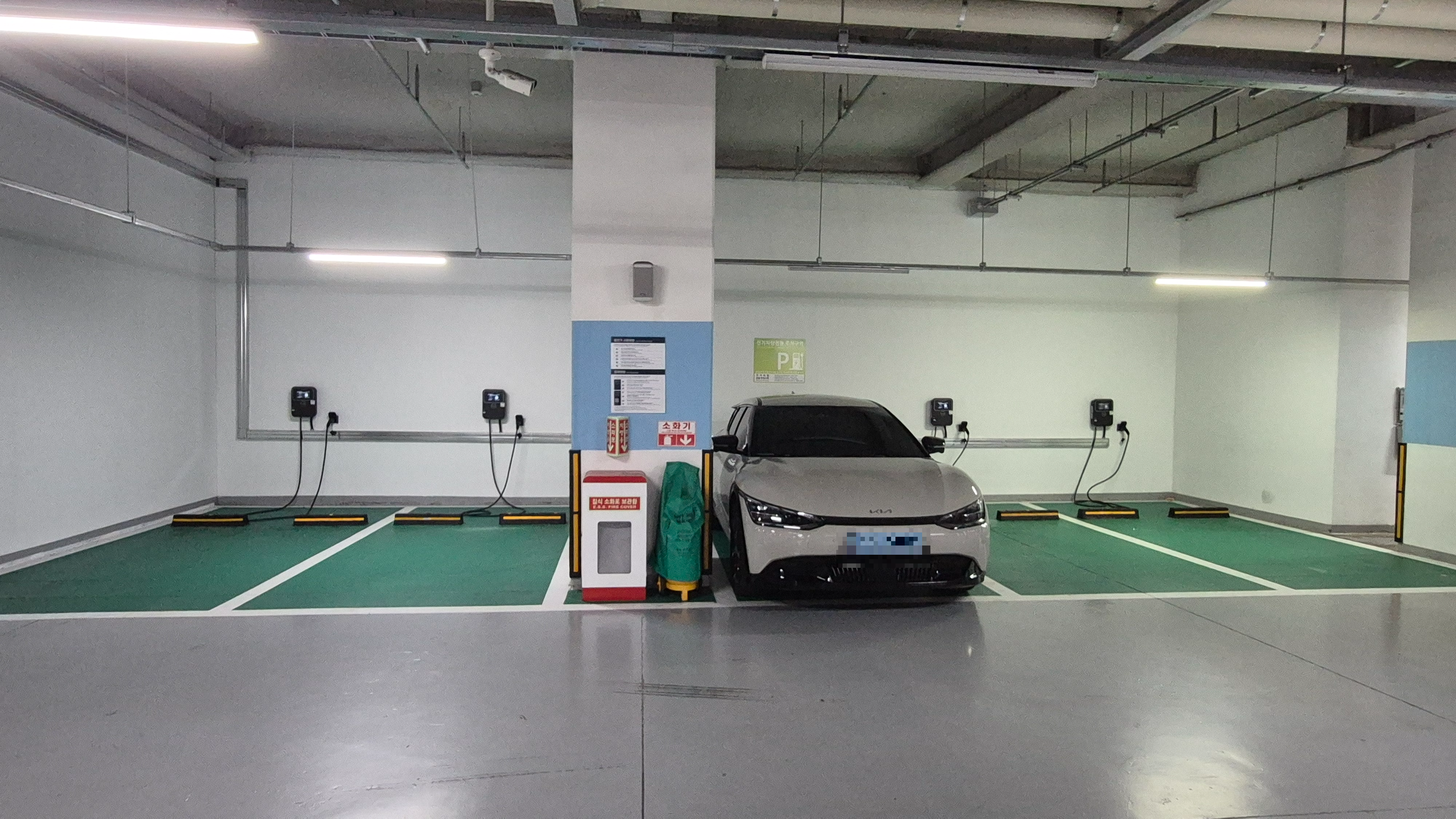 B3층에는 차지비 완속충전기가 5기 설치되어있어 전기차 충전도 용이하였습니다