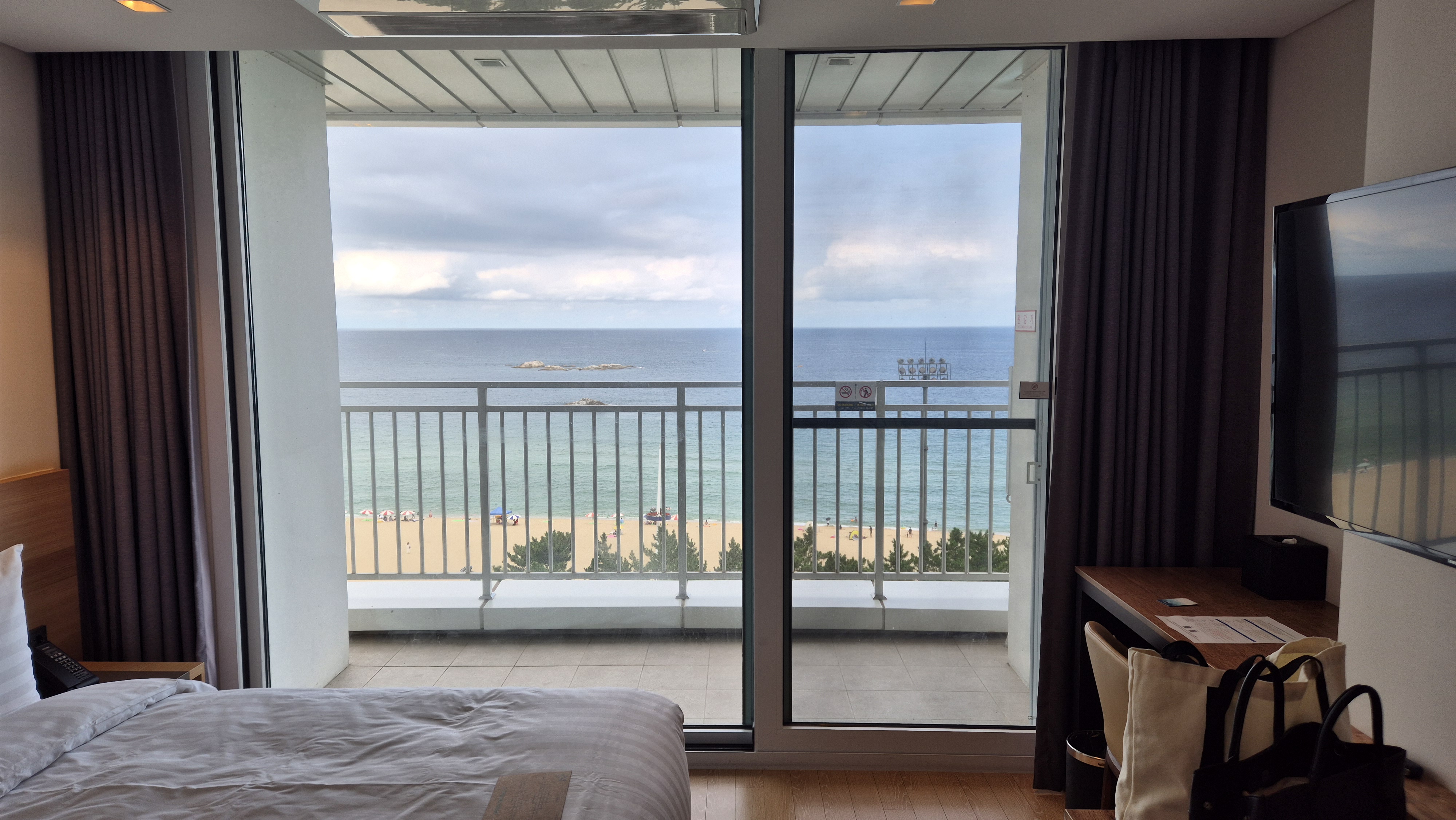 방 안에서 경포해수욕장쪽을 바라본 뷰 입니다
