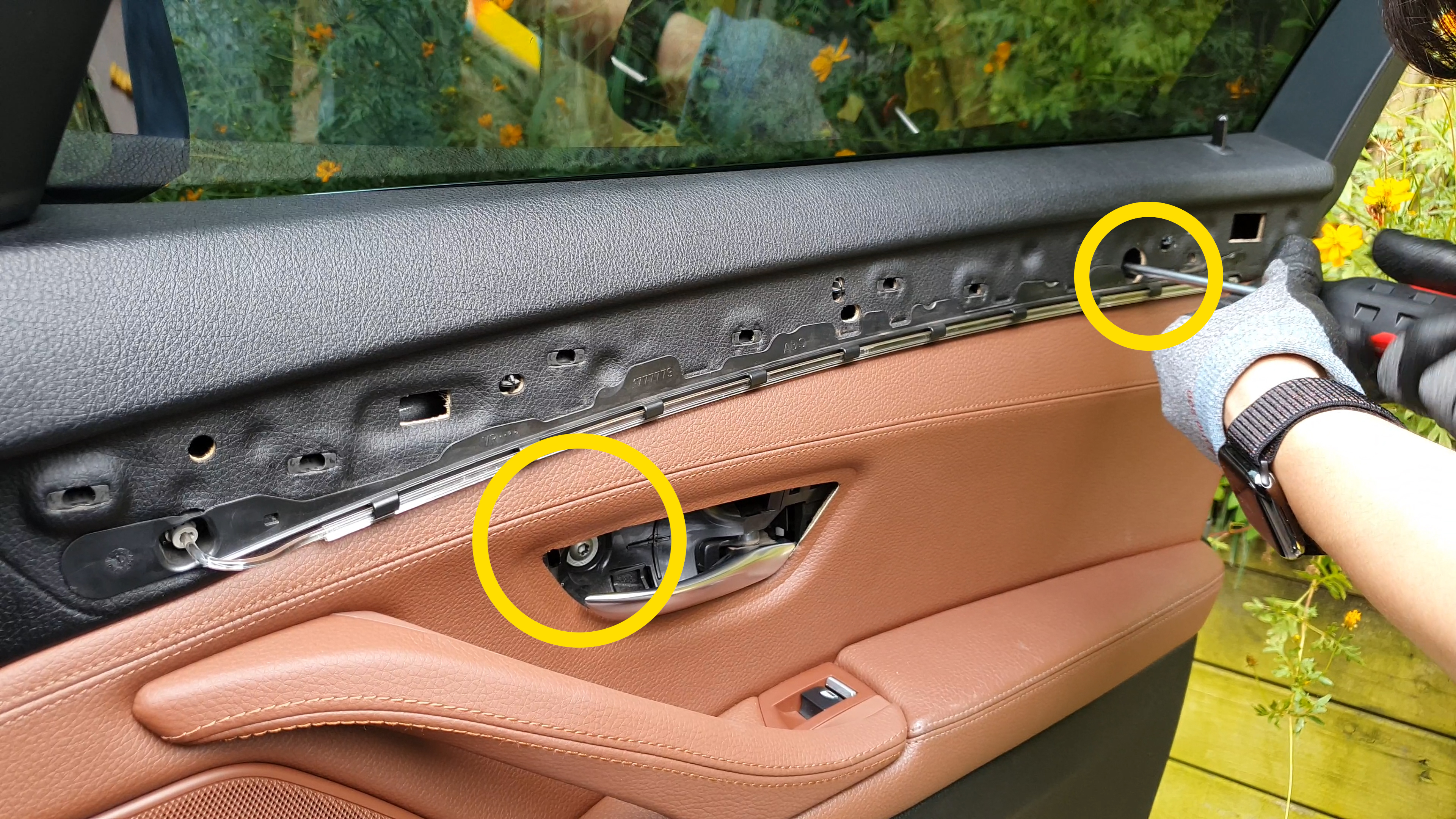 우선 헤라를 이용하여 사진에 도어 가니쉬 부분을 탈거해줍니다