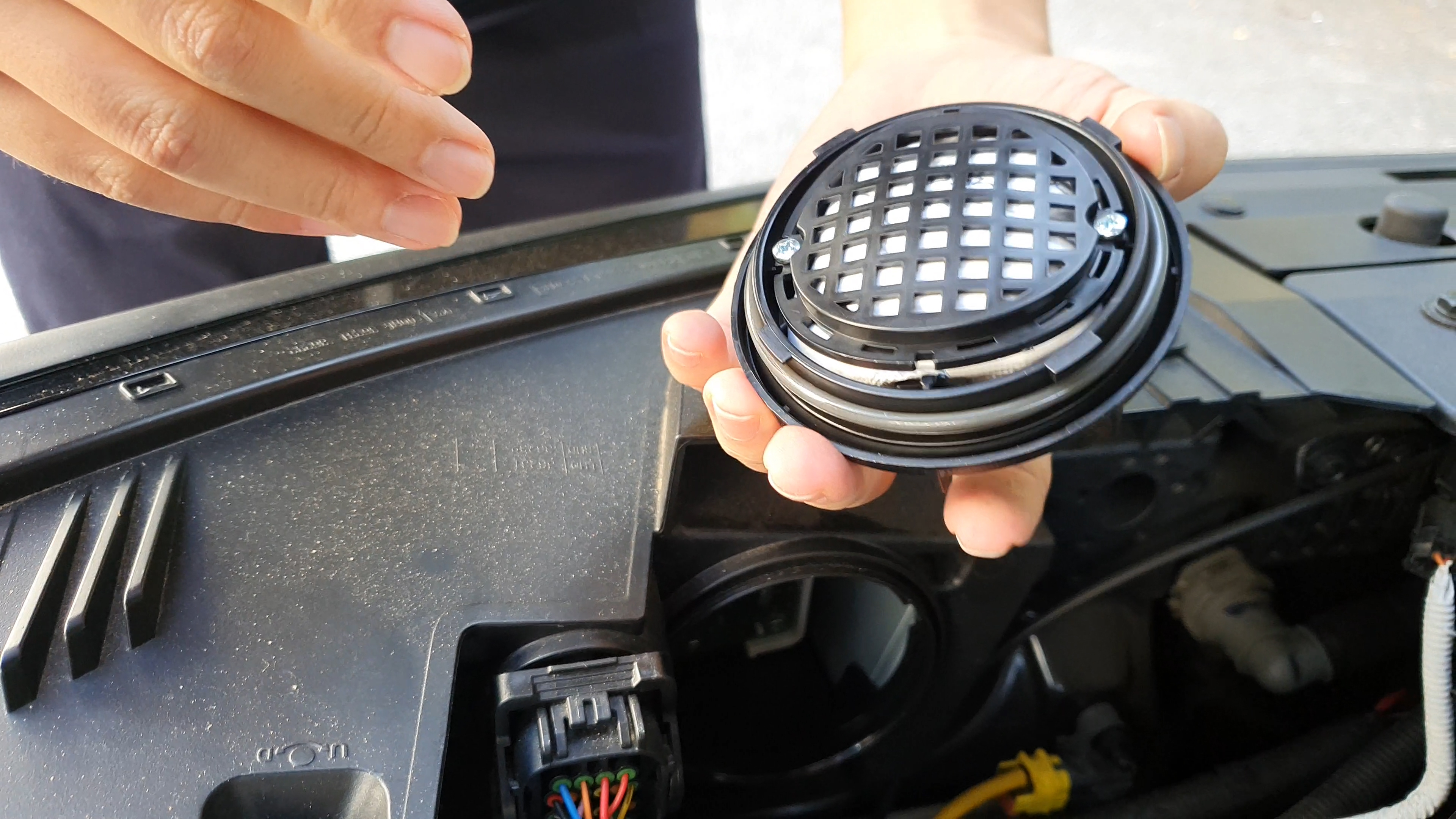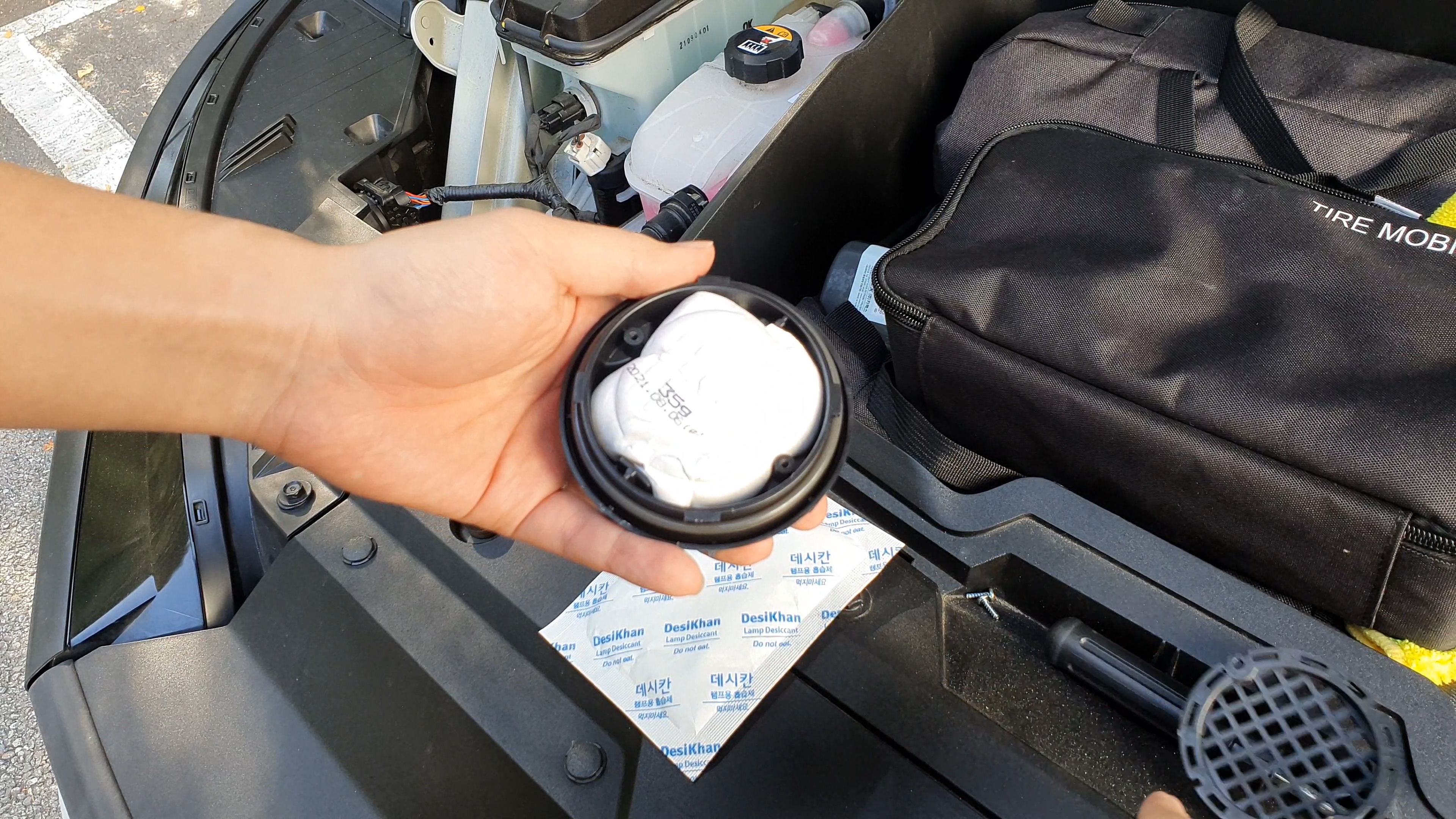 본넷을 열고 라이트 뒤쪽을 보면 돌릴 수 있는 마개가 있습니다