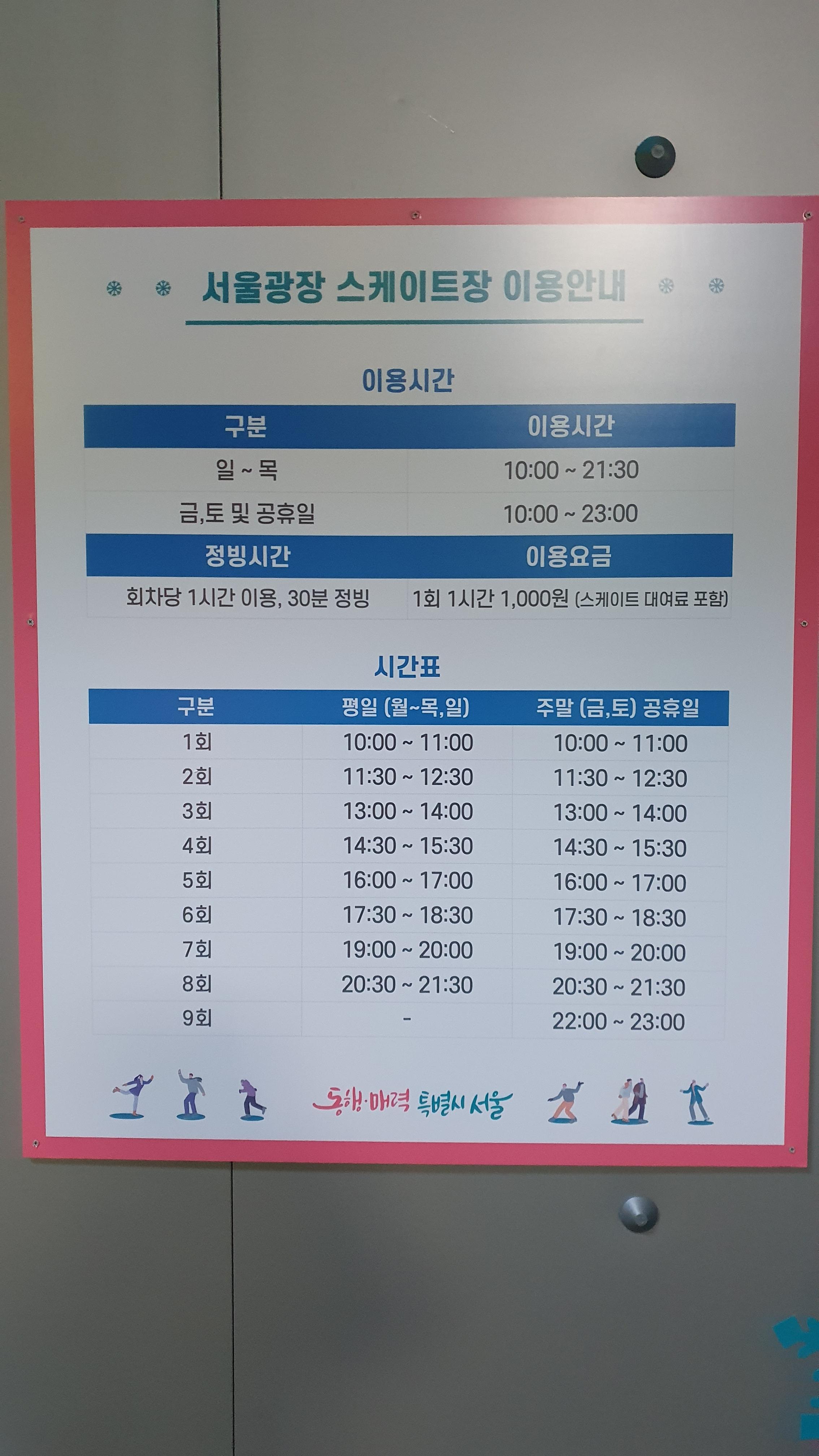 이용요금 : 1,000원(1회 1시간, 스케이트 대여료 포함)