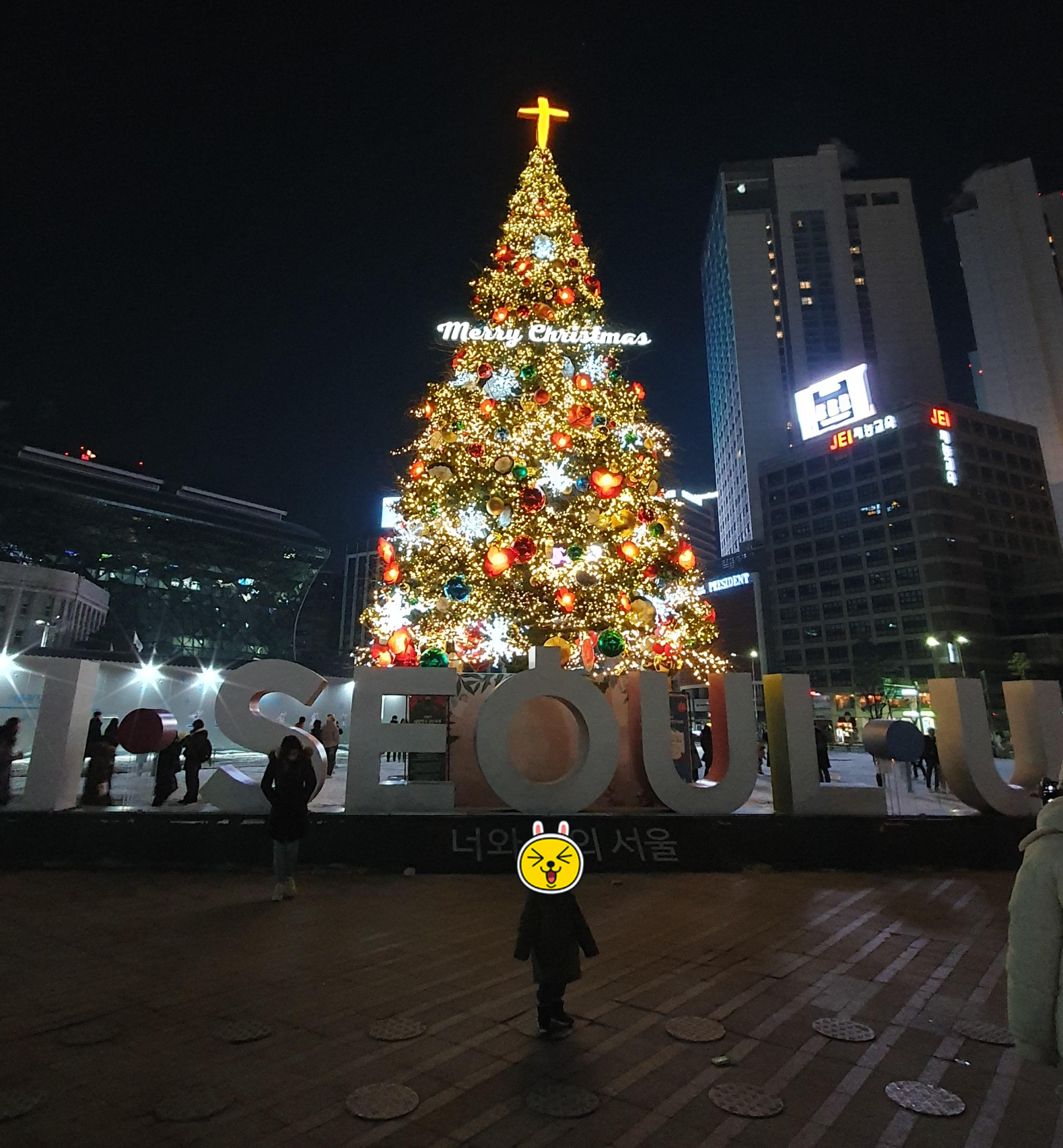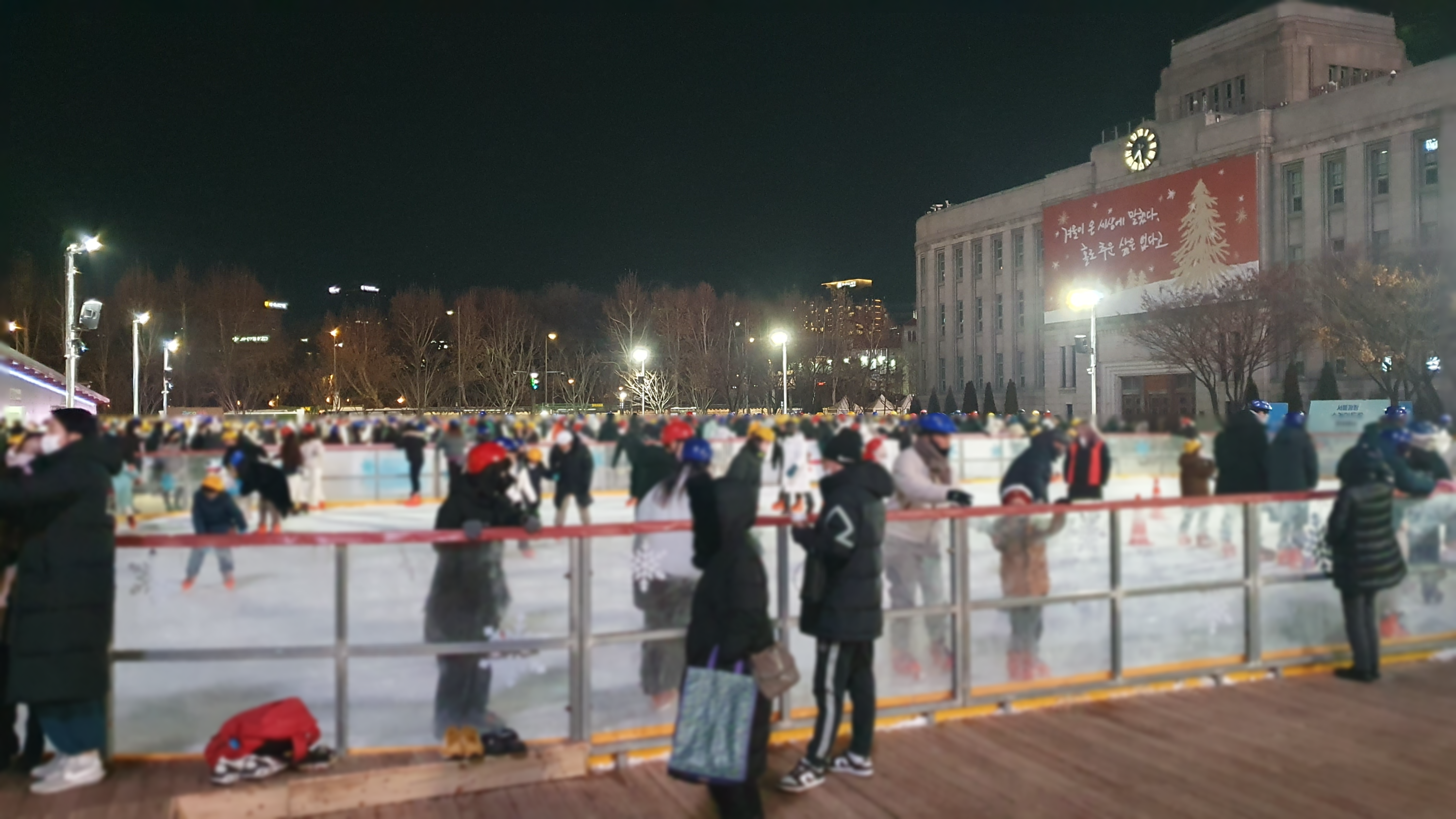 광장에 스케이트장이랑 큰 크리스마스 트리가 설치되어있어서