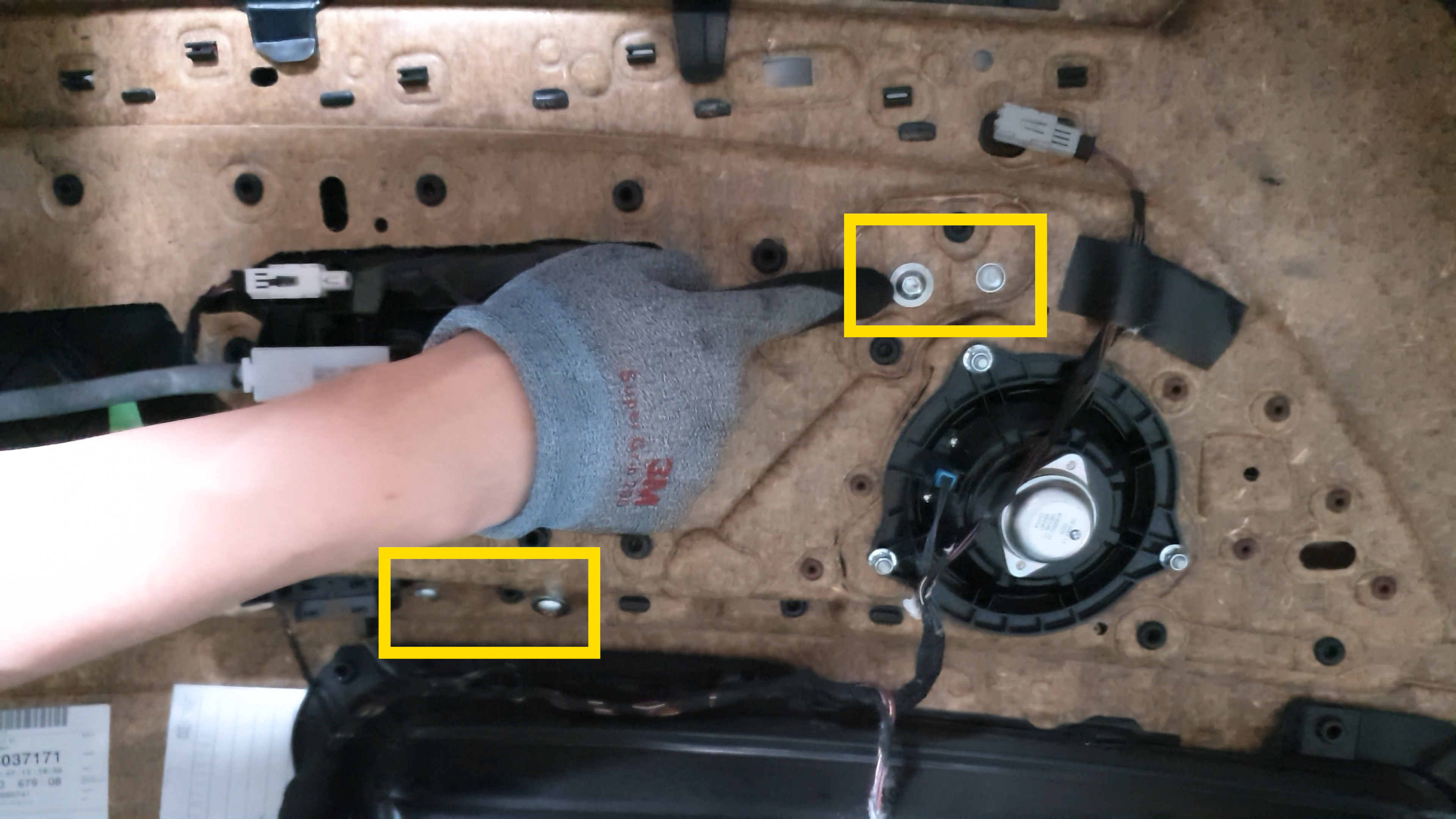 우선 도어트림에 노란색 네모로 표시된 곳에 있는 몰딩을 탈거해야합니다