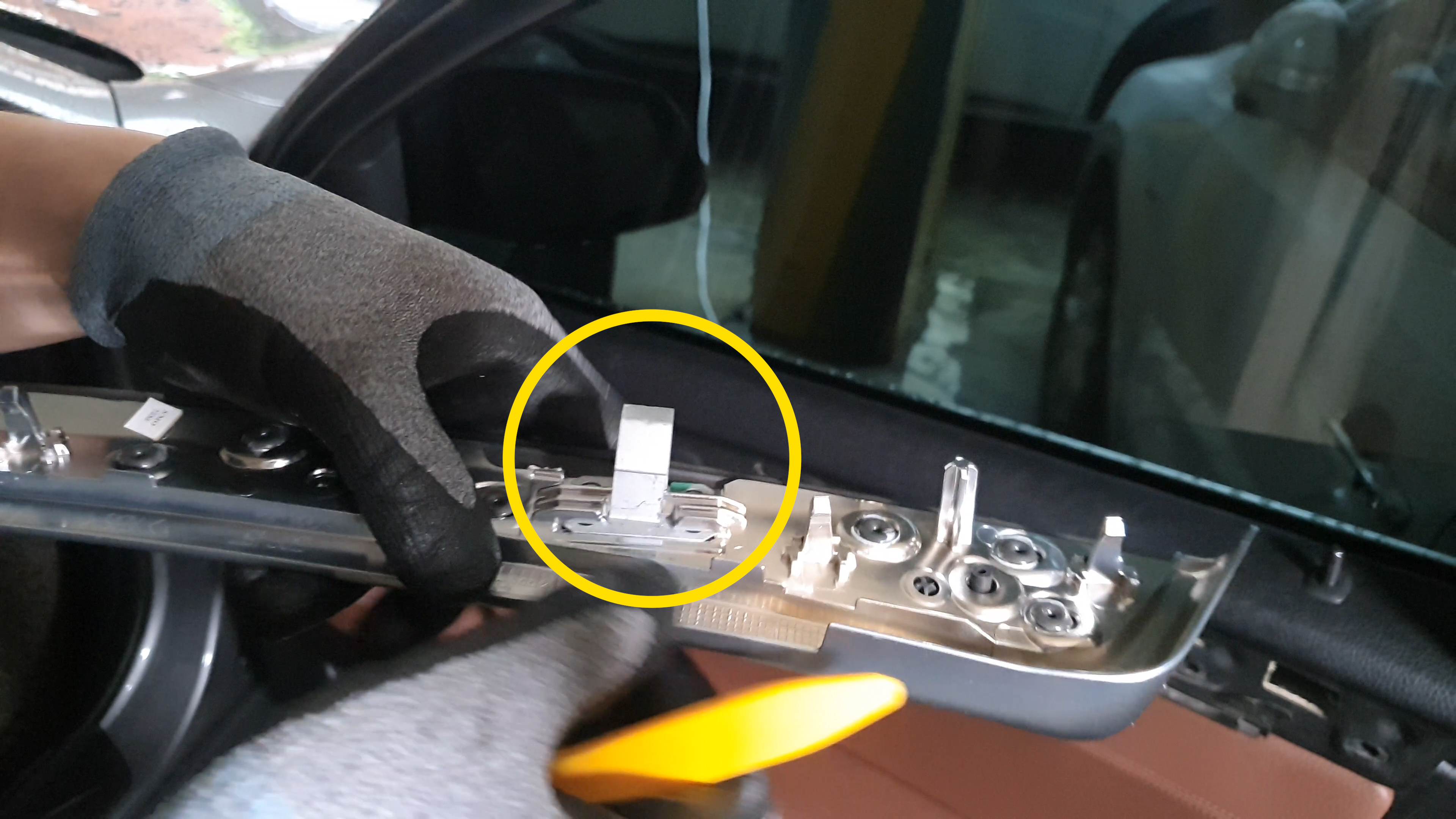 몰딩의 키가 어느정도 분리되었으면 노란색동그라미 부분에 사진처럼 걸쇠가 걸려있습니다