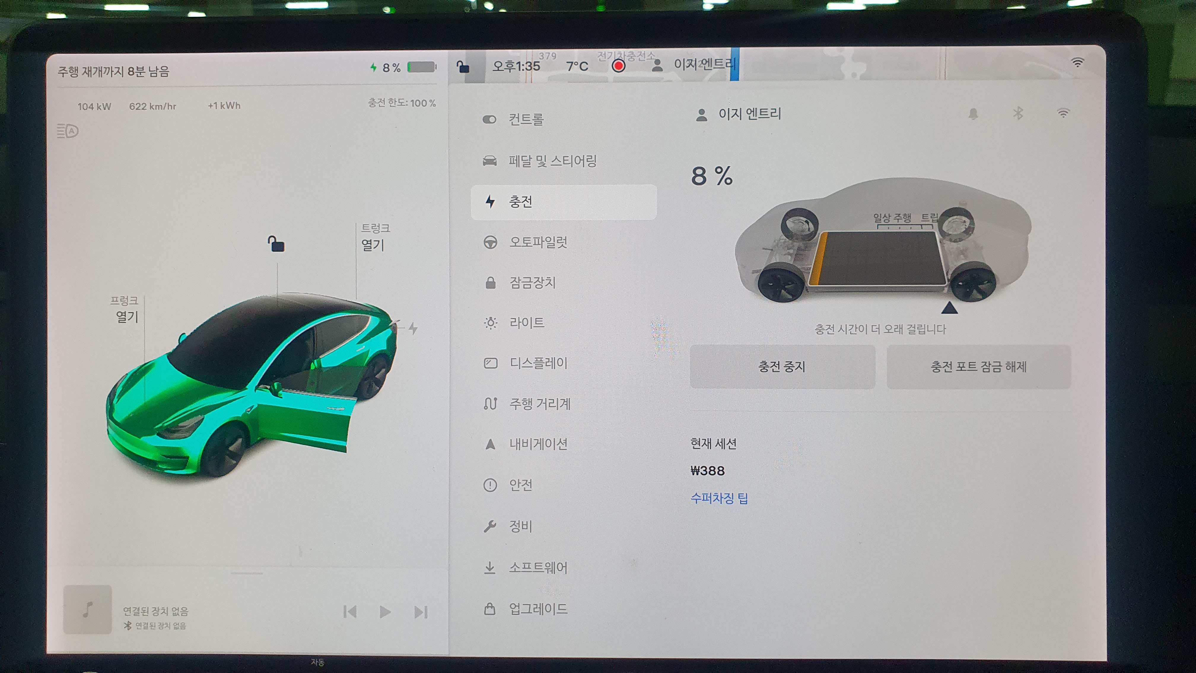 수퍼차저를 목적지로 설정하면 급속충전을 위해 프리컨디셔닝이 진행되죠