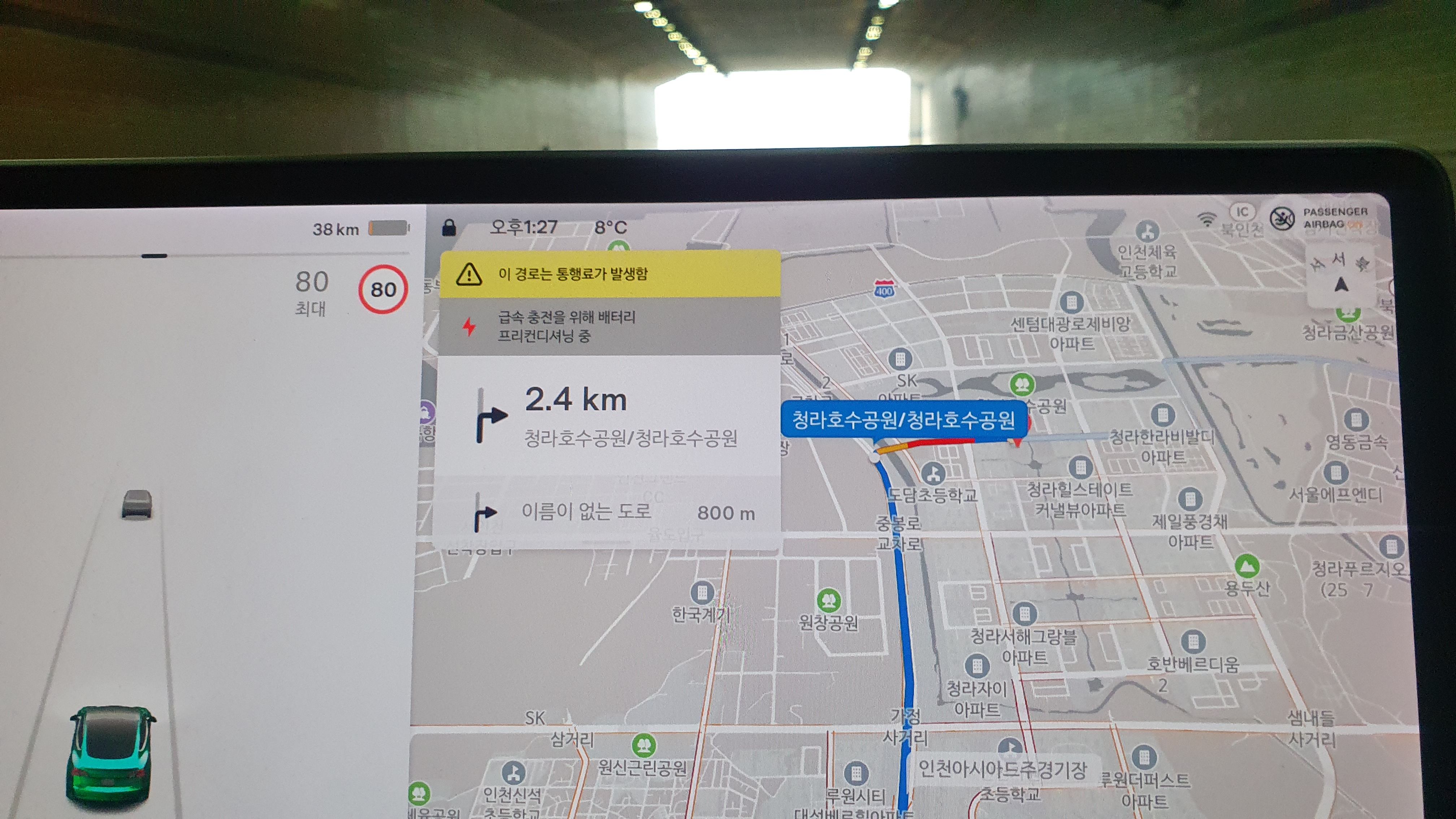 테슬라 네비에 청라수퍼차저를 목적지로 설정하고 가봅니다