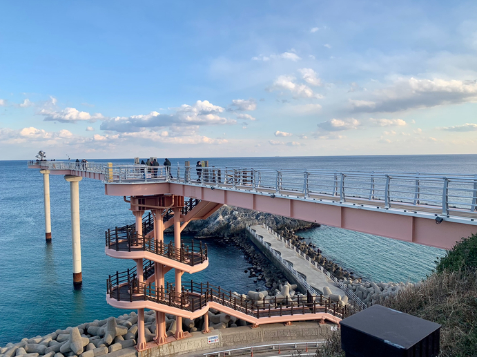 등기산 스카이워크는 이렇게 바다위에 20m의 높이에 135m의 길이로 세워진 구조물입니다