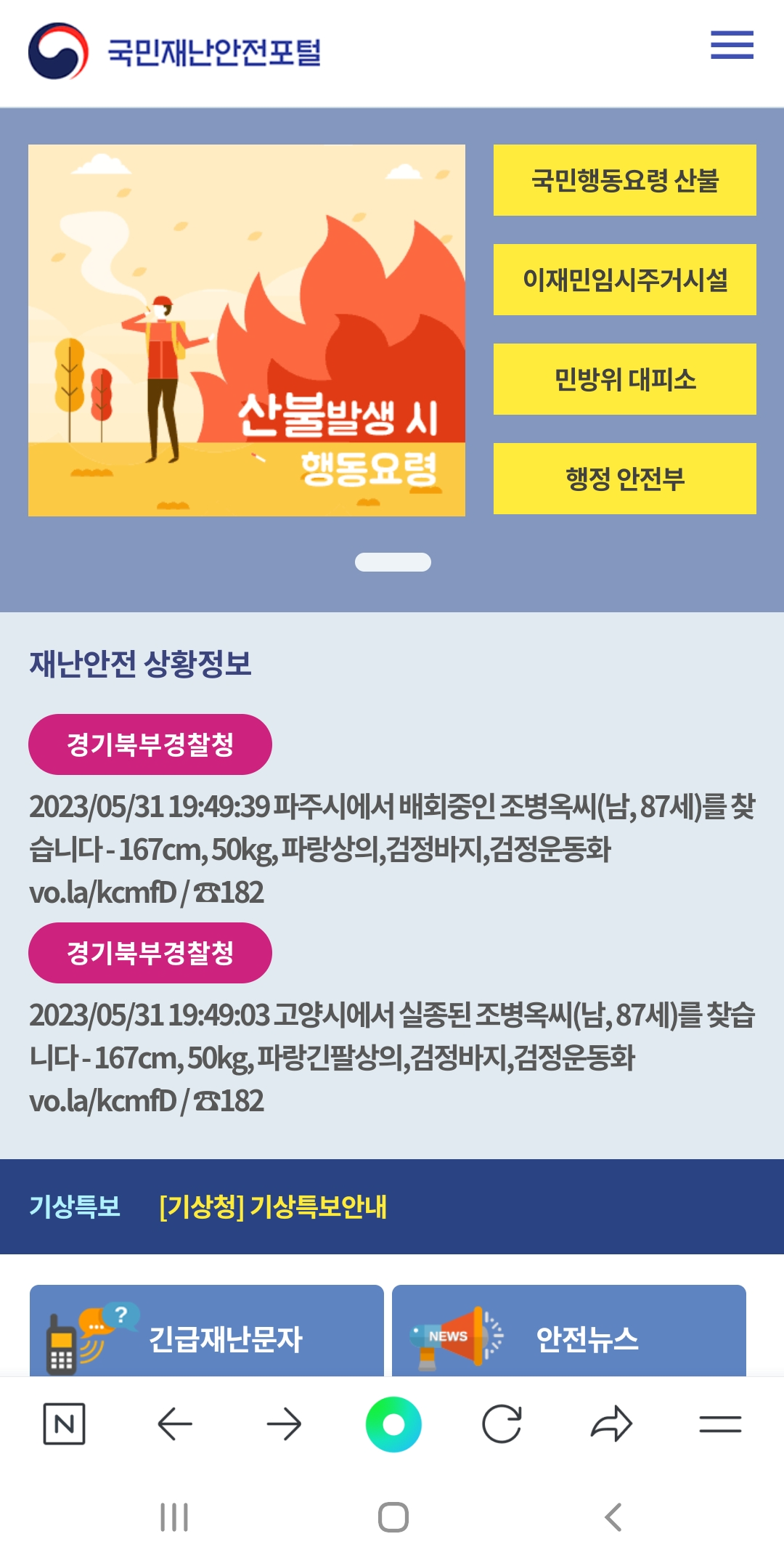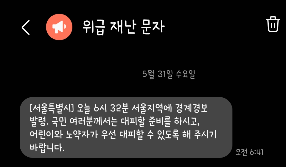 2023년 5월 31일 오전 6시31분 갑자기 핸드폰에서 긴급알람이 울렸습니다