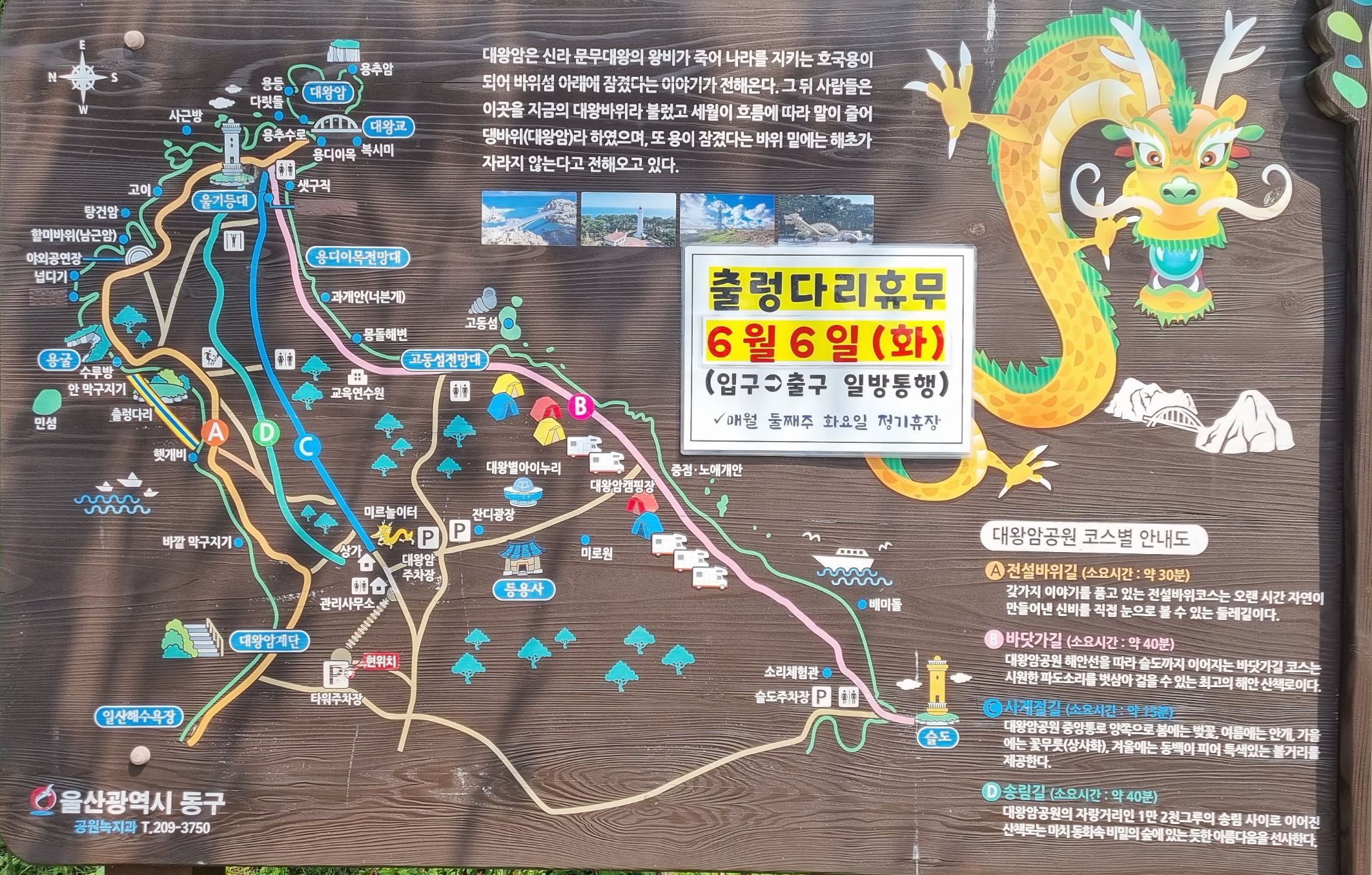 입구에서 대왕암까지 가는코스는 A B C D 이렇게 4가지 코스가 있는데