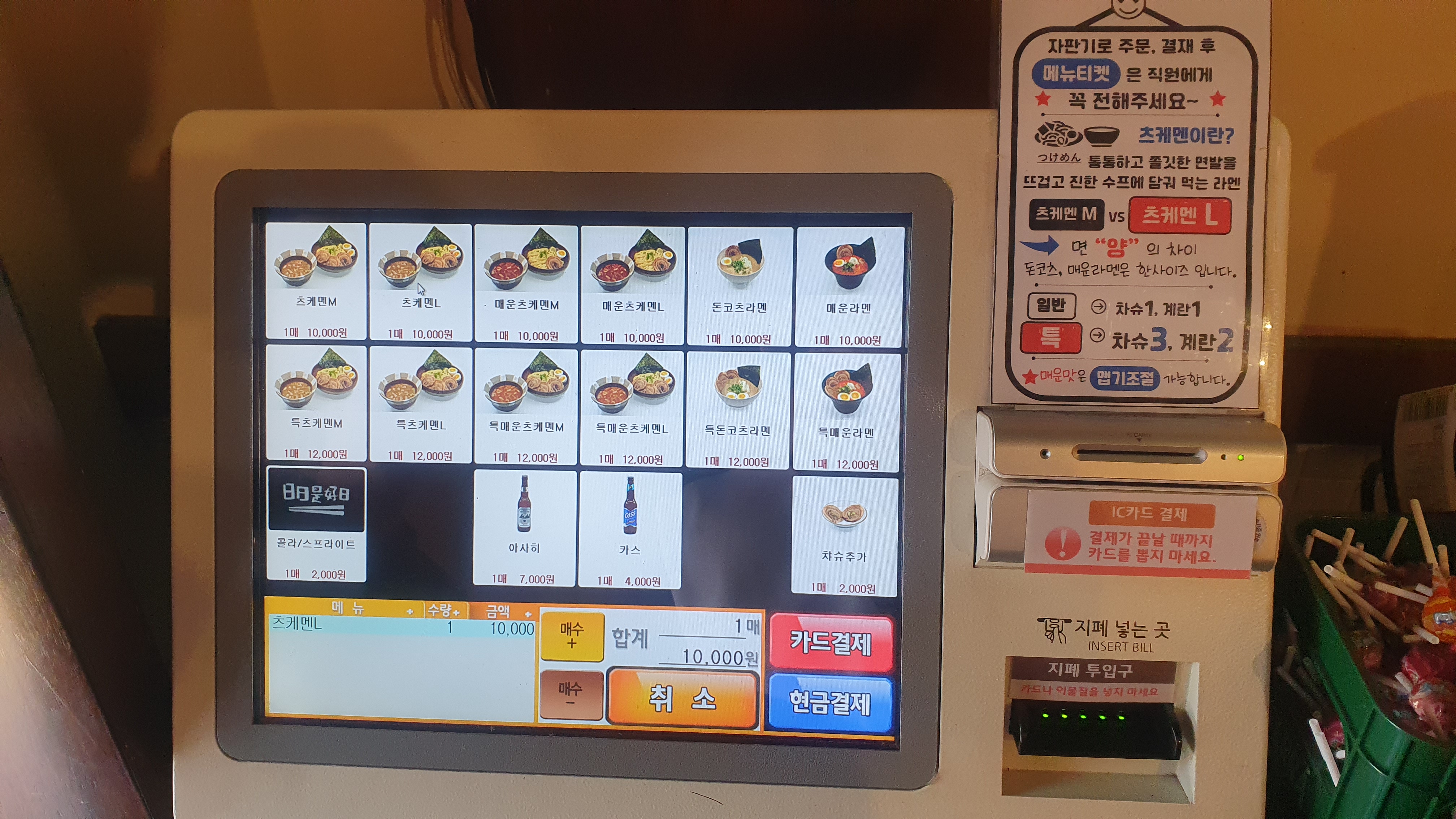 메뉴는 이렇게 키오스크로 주문을 하게 되어있구요