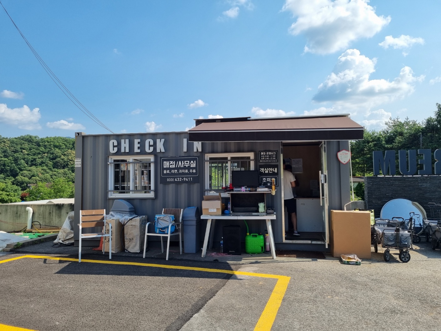 매점 겸 사무실 컨테이너가 있습니다 이곳에서 체크인을하고