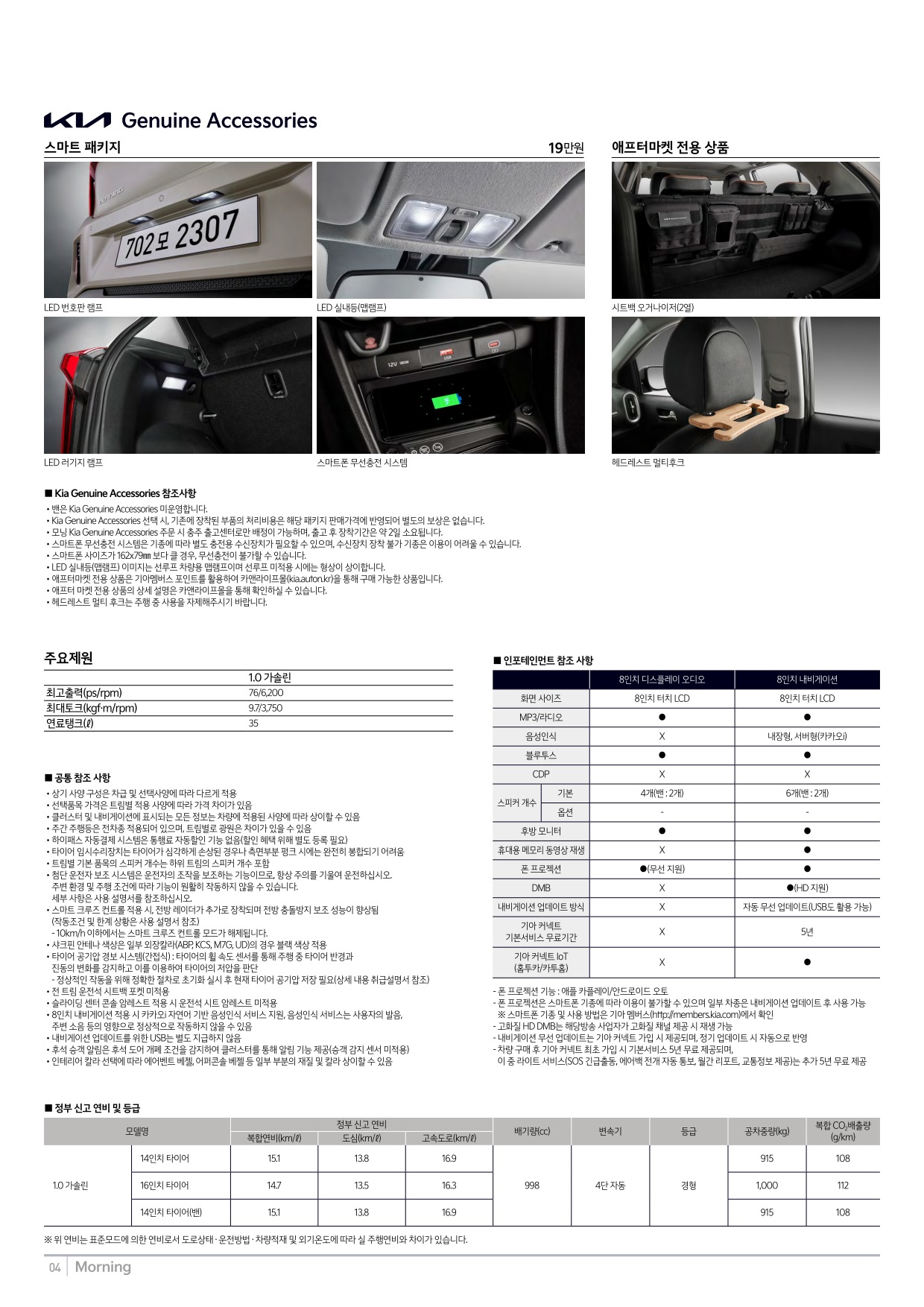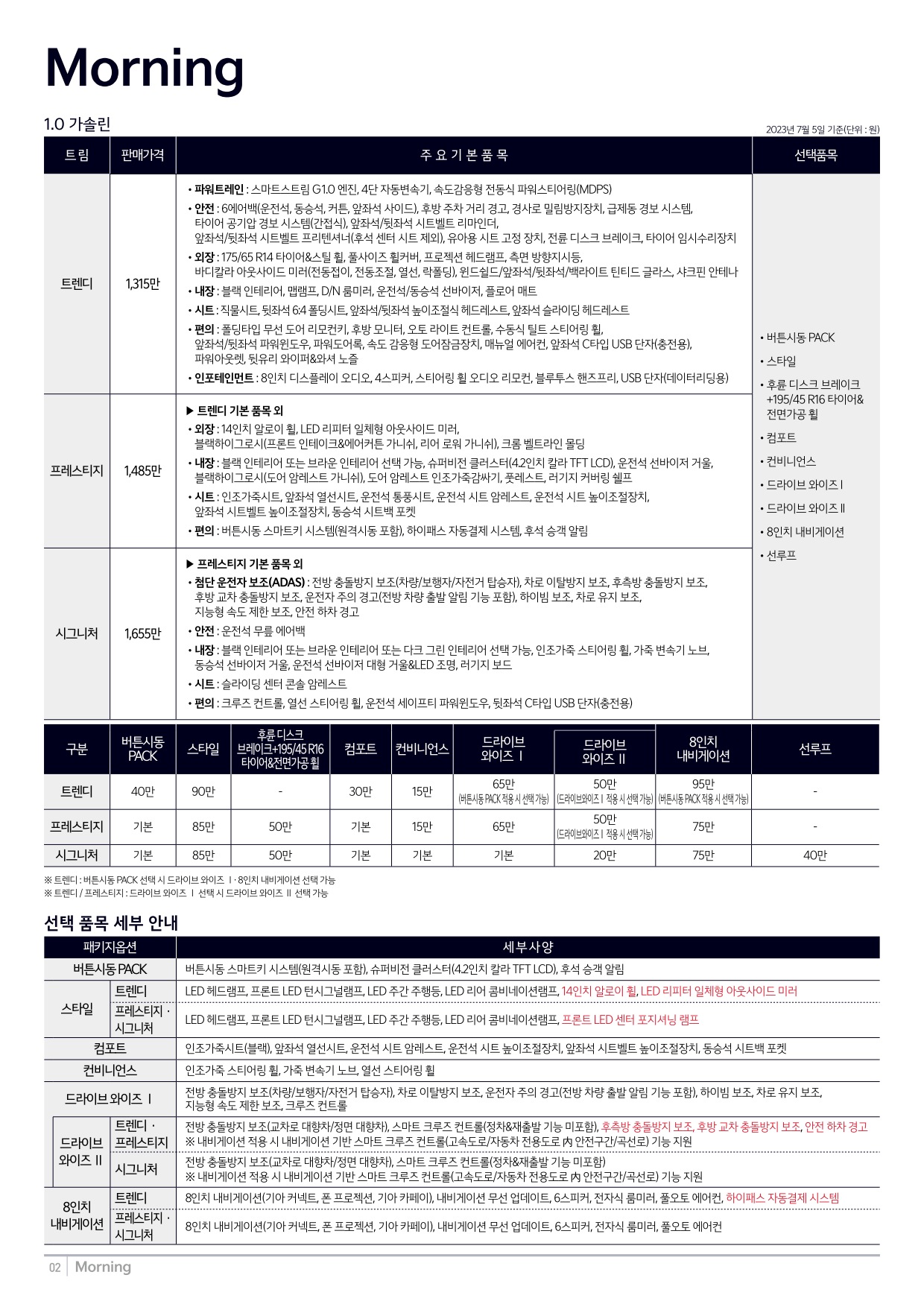 [ 2023 더 뉴 모닝 가격표 / 옵션표 ]