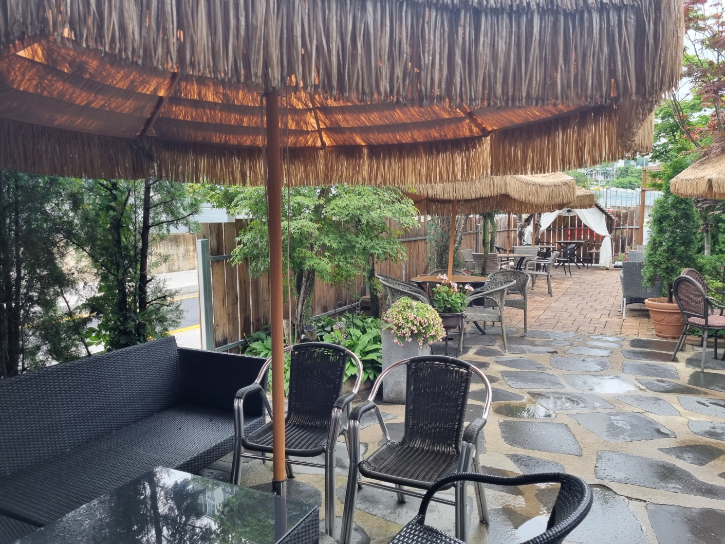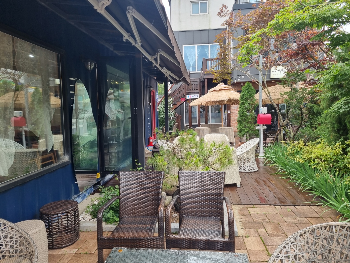비가오는 날이였는데 비가 그쳐서 야외에 앉았는데