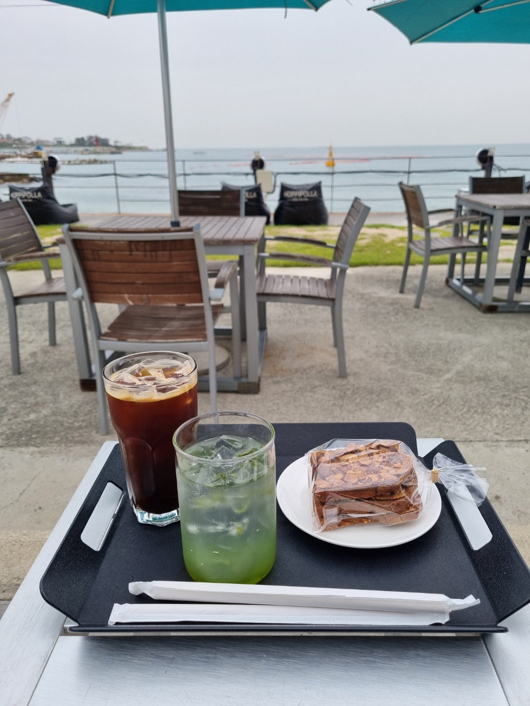 살짝 가격대가 있긴하지만?! 바로앞에 바다를 보며 마실 수 있는 뷰값이 포함되어있으니까ㅎ